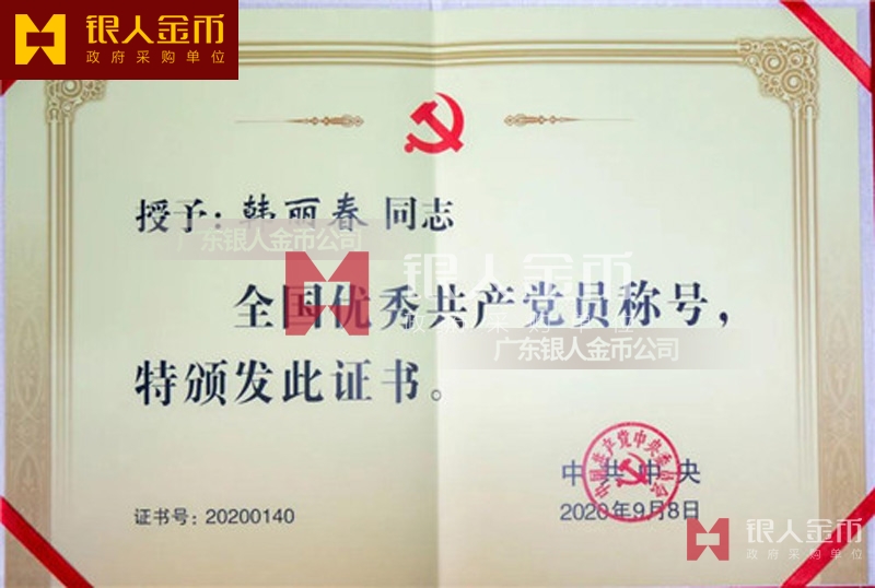 中共中央/中組部2020年“全國優(yōu)秀共產(chǎn)黨員”稱號獎?wù)?、獎牌、證書(實物)