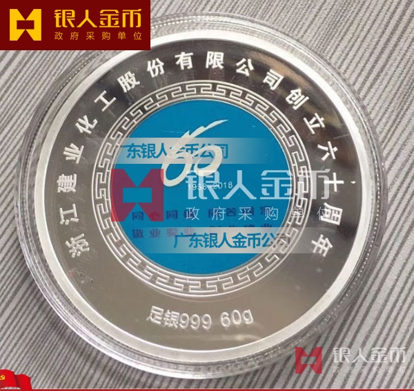 浙江建業(yè)化工公司成立60周年慶銀質(zhì)紀(jì)念章定制與銀制紀(jì)念章定做(圖)