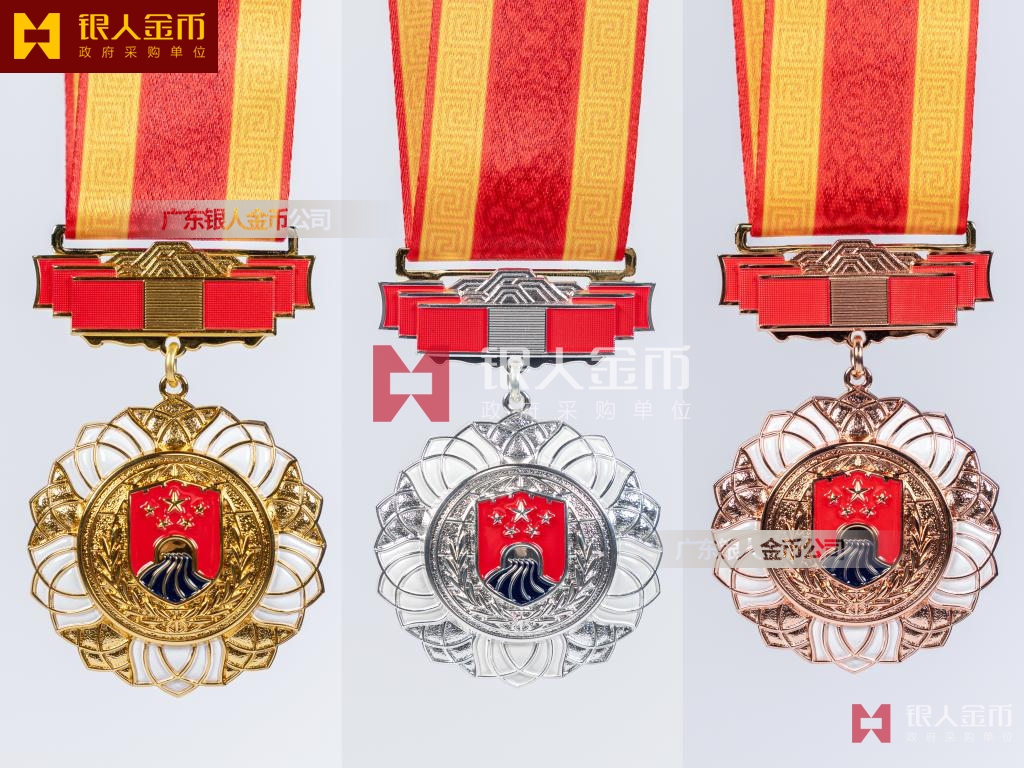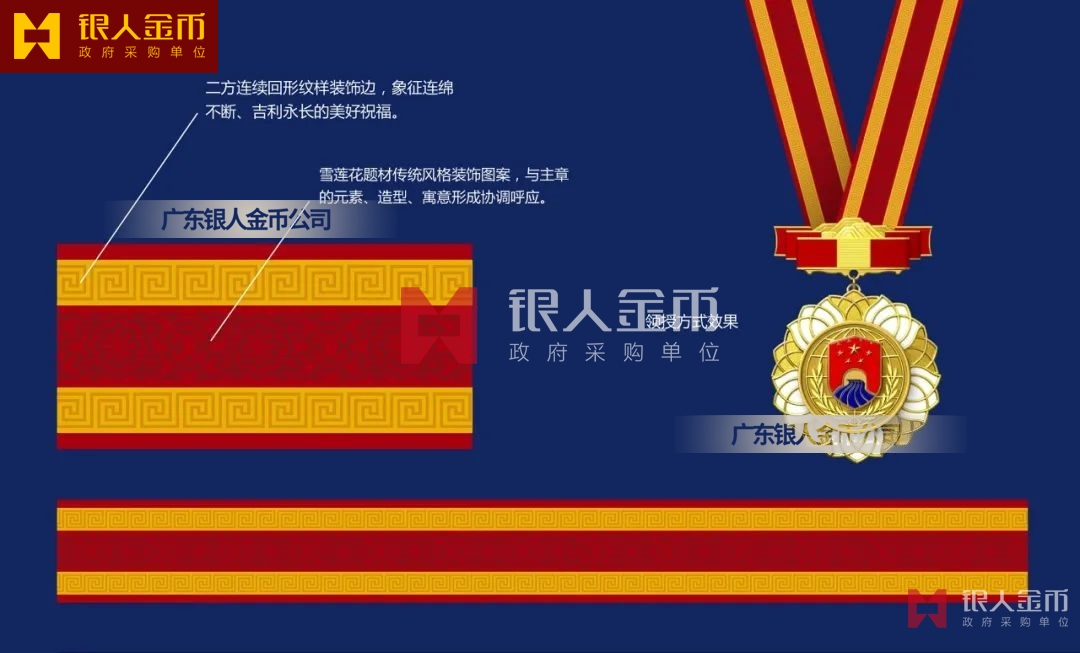 【產(chǎn)品】勛章由飄帶、獎(jiǎng)?wù)掠缮椒濉⒓o(jì)念章由如意等元素構(gòu)成,金銀銅色條分別代表戍邊工作年限累計(jì)滿30年、20年、10年。