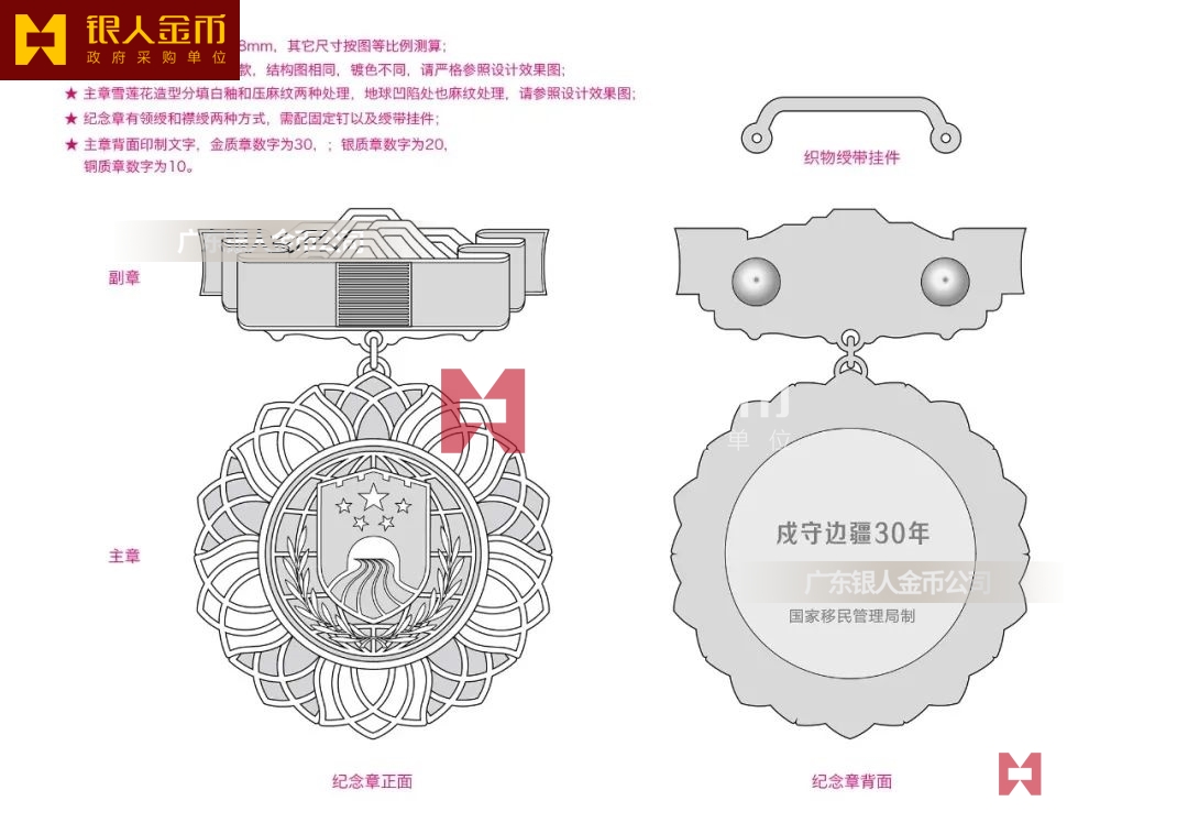 根據(jù)《國(guó)家移民管理機(jī)構(gòu)戍守邊疆紀(jì)念章頒發(fā)管理辦法》有關(guān)規(guī)定,對(duì)在西藏自治區(qū)全區(qū)和其他邊境省區(qū)三類以上艱苦邊遠(yuǎn)地區(qū)工作(含曾在三類以上艱苦邊遠(yuǎn)地區(qū)工作過的戍邊民警)累計(jì)滿30年、20年、10年的在編在職移民管理警察,分別頒發(fā)金質(zhì)、銀質(zhì)、銅質(zhì)紀(jì)念章。2023年首次頒發(fā),此后每年頒發(fā)一次。