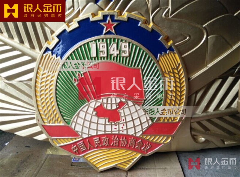 國徽訂做、國徽生產(chǎn)、國徽批發(fā)、國徽制作、國徽銷售、國徽設(shè)計、國徽制做、國徽定做、國徽制造、國徽加工、國徽零售我們做為一個對人民和政府負責任的企業(yè),用精湛的工藝來報答人民服務(wù)忠于國家和人民的群體,用專業(yè)來服務(wù),【廣州天河徽章廠】制作大型標志徽章是嚴格按照《中華人民共和國國徽標準[GB15093-94]的規(guī)定制作,公安警徽按照《人民警察警徽技術(shù)標準》[GA244-2000]制作,其他標志制作按照國徽標準來制作。是采用高強度輕鋁合金為材料,并采用先進的浸透壓延鑄造技術(shù),高光澤靜電均布式噴烤漆和先進貼金工藝,掛徽表面噴涂進口透明防腐蝕漆加以保護。具有重量輕,高強度,拒風雨抗日曬,色彩鮮艷,永不褪色的特點。高光澤靜電均布式噴烤漆和先進貼金工藝,掛徽表面噴涂進口透明防腐蝕漆加以保護。具有重量輕,高強度,拒風雨抗日曬,色彩鮮艷,永不褪色的特點。是會議室、禮堂、辦公大樓、機關(guān)大院等重要場所的必備標志 為全國顧客提供訂做、生產(chǎn)、批發(fā)、制作、銷售、設(shè)計、制做、定做、制造、加工、零售等各種形式的服務(wù)。如果你有以下疑問:大型國徽哪里有賣、國徽那里可以制作、國徽在哪里能買到、國徽哪能買到、國徽如何買到、國徽哪里可以買到、國徽現(xiàn)貨哪里可以買到、國徽哪里能買到、國徽哪里有出售、國徽哪有賣、有制作有做國徽的廠子、國徽那里能買到、國徽有賣、國徽多少錢,廣東銀人將為你一一解答,國徽制造企業(yè)制作訂購,【廣州徽章廠】大型掛徽標的生產(chǎn)工藝流程一般為:制作模具、澆筑、拋光、上漆、烤漆/貼金。我廠由于經(jīng)營多年,常見的標志各種規(guī)格模具齊全,常見標志一般都有現(xiàn)貨。大型掛徽的常見規(guī)格有:40公分、50公分、60公分、70公分、80公分、90公分、1米、1.2米、1.4米、1.5米、1.8米、2米、2.5米、3米、3.5米等。