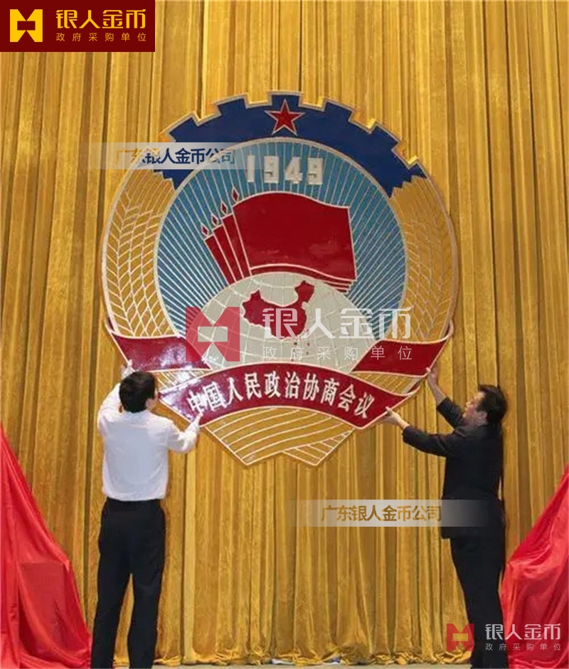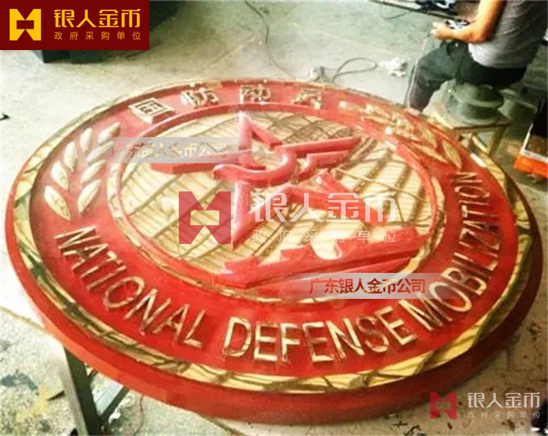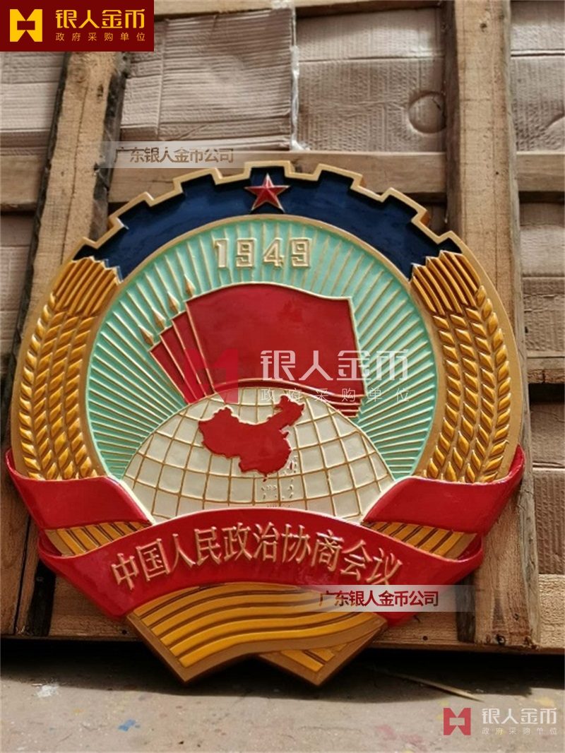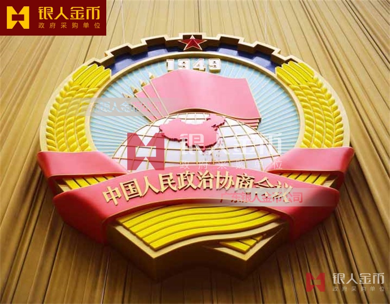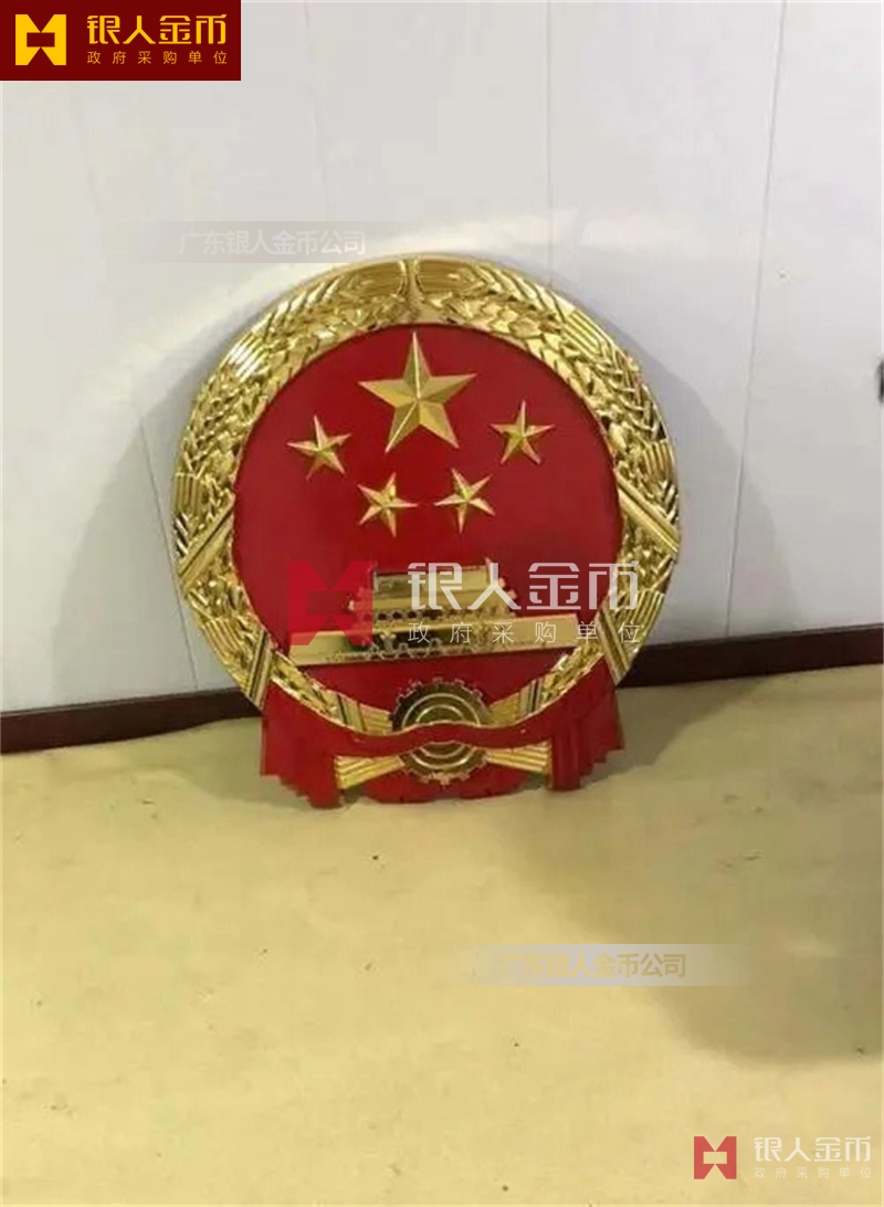 政府部隊戰(zhàn)區(qū)機關(guān)大樓門頭禮堂戶外室內(nèi)外懸掛大型國徽黨徽八一軍徽警徽政協(xié)徽生產(chǎn)制作定制(圖)【廣州徽章廠制作公司】