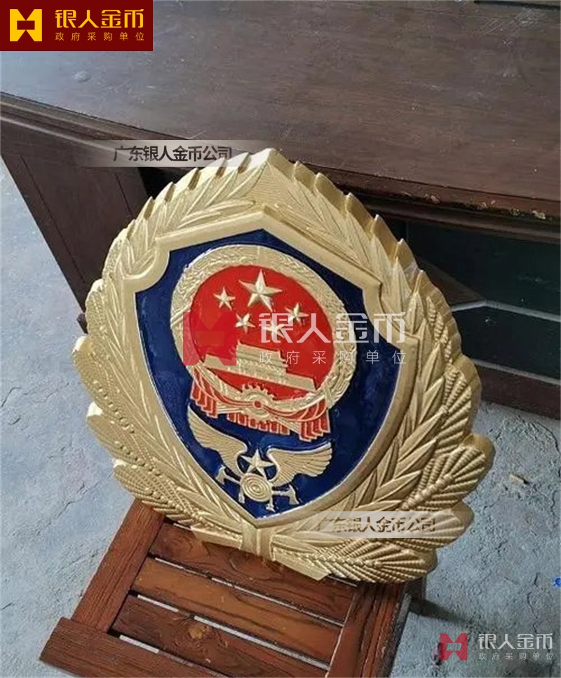 警徽制作 1米警徽壓鑄工藝重量約6公斤,背面有6個懸掛孔,可承受重量100斤左右,警徽采用鋁合金材質(zhì)制作,重量輕不生銹,警徽具有抗氧化不褪色等各種特點;