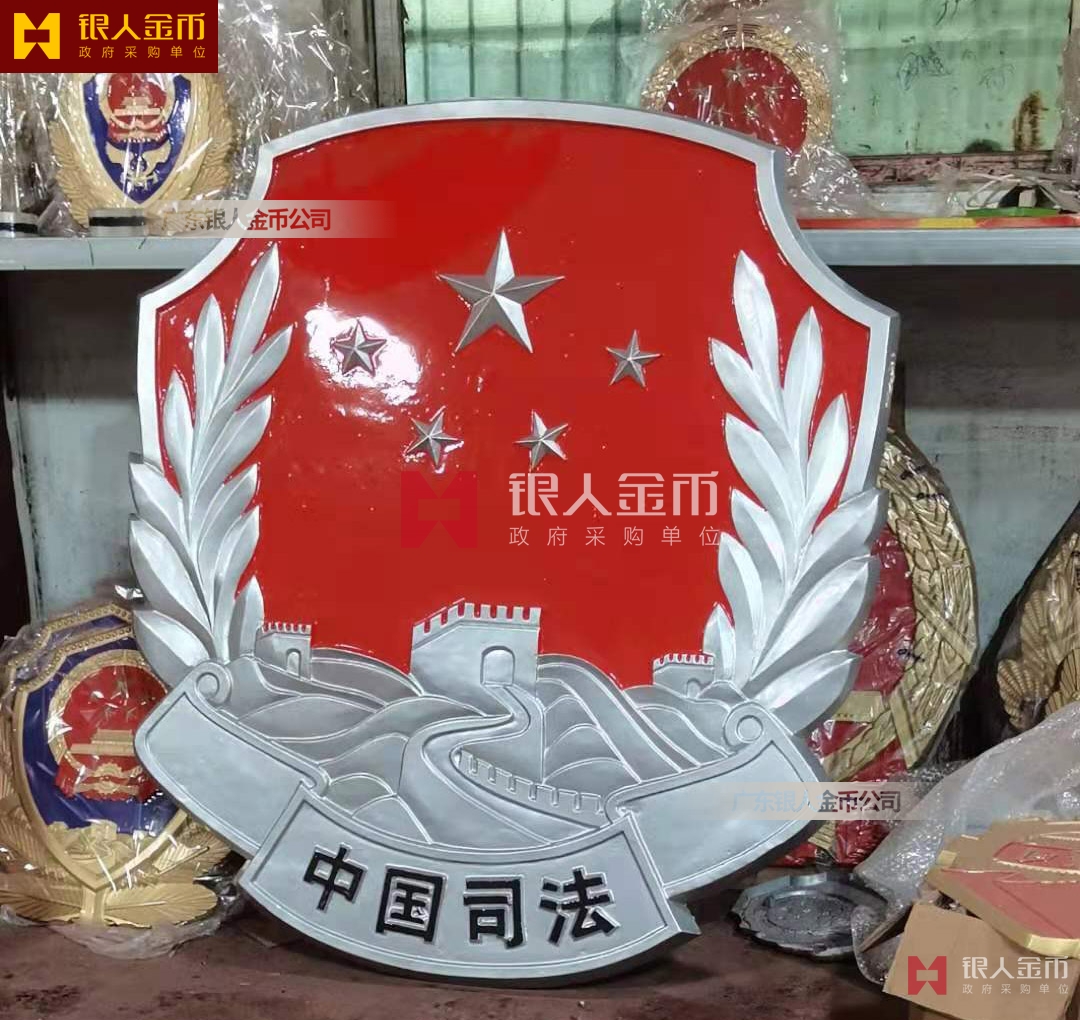 大型戶外大樓室內(nèi)禮堂懸掛人大政協(xié)會徽軍警稅務(wù)司法工會交通安監(jiān)質(zhì)監(jiān)檢疫法院檢察院徽標生產(chǎn)定制制造【廣州銀人徽章廠制作公司】