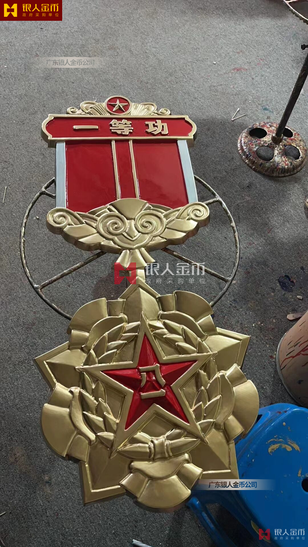 政府部隊戰(zhàn)區(qū)機關(guān)大樓門頭禮堂戶外室內(nèi)外懸掛大型國徽黨徽八一軍徽警徽政協(xié)會徽五角星檢察院徽法院徽標生產(chǎn)制作定制(圖)【廣州徽章廠制作公司】