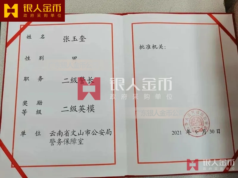 公安部全國公安系統(tǒng)二級英雄模范獎?wù)伦C書