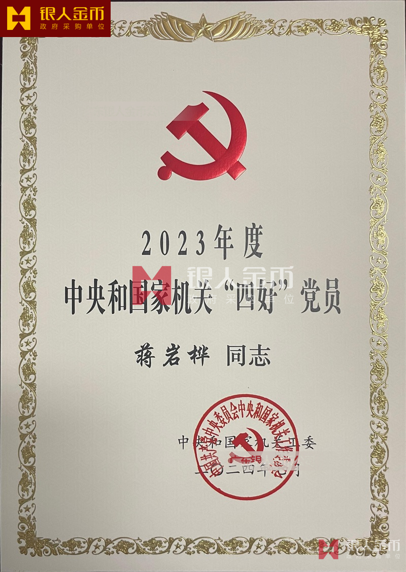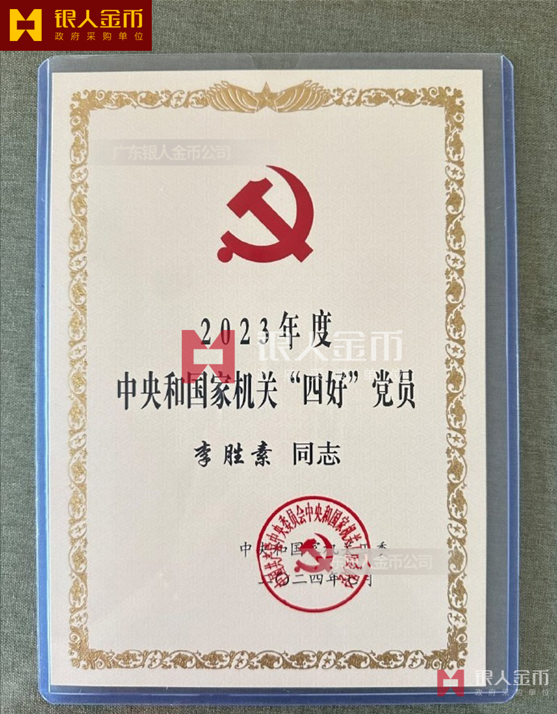 2023年度中央和國(guó)家機(jī)關(guān)“四好”黨員稱號(hào)證書和中央和國(guó)家機(jī)關(guān)”四強(qiáng)“黨支部獎(jiǎng)牌證書牌匾(圖)