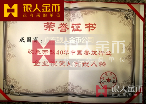 改革開(kāi)放40年中國(guó)餐飲行業(yè)企業(yè)家突出貢獻(xiàn)獎(jiǎng)金質(zhì)獎(jiǎng)?wù)陋?jiǎng)牌證書(shū)(圖)