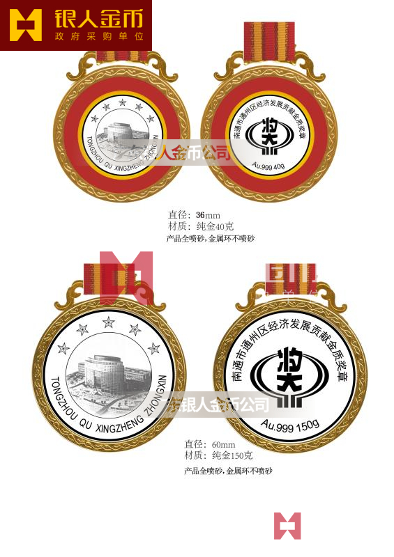江蘇省南通市通州區(qū)2024年度至2026年度百強企業(yè)(集團)表彰黃金獎牌純金獎牌足金獎牌金牌制作