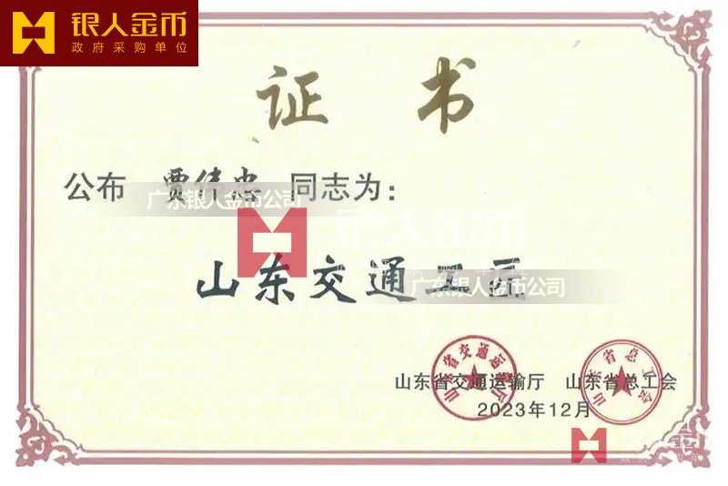 山東省交通廳山東交通工匠獎?wù)陋勁谱C書(圖)