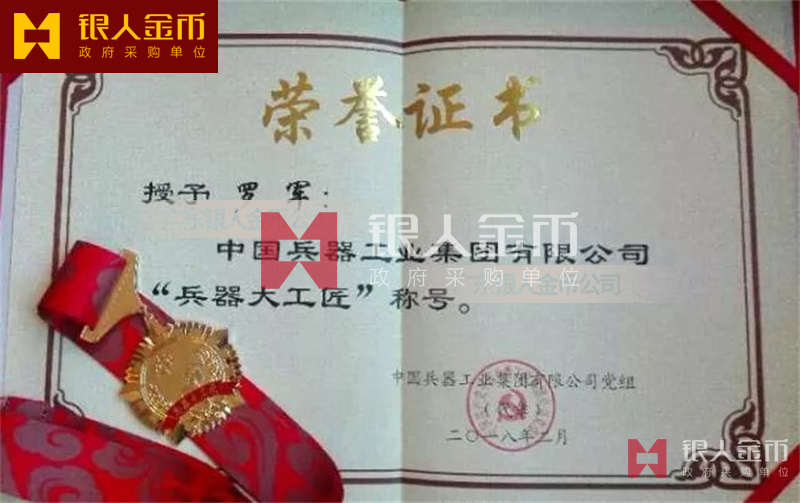 中國兵器工業(yè)集團(tuán)兵器大工匠獎?wù)聞渍录o(jì)念章榮譽獎?wù)聵s譽勛章獎牌證書(圖)