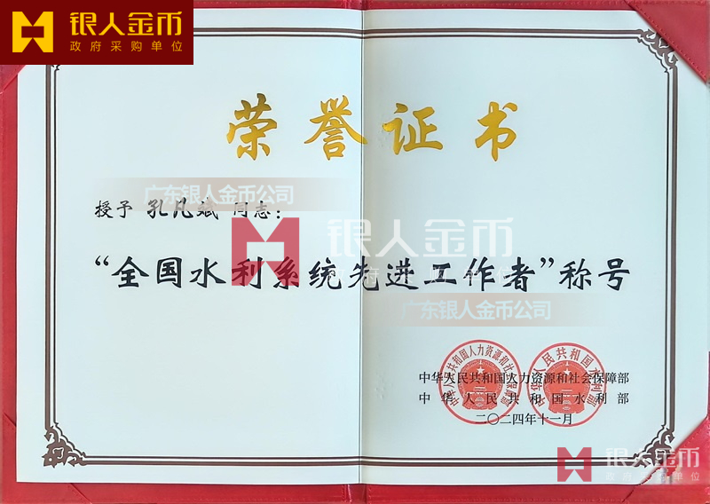 中華人民共和國水利部全國水利系統(tǒng)先進集體獎牌證書和先進工作者獎?wù)聞渍录o念章證書(圖)