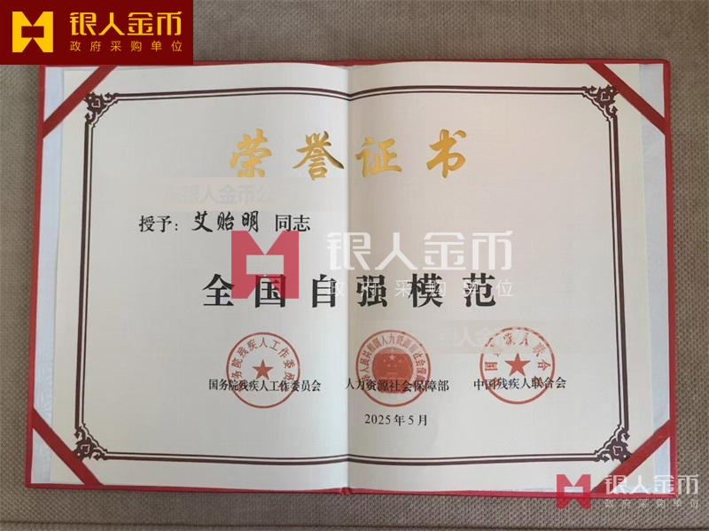 中國殘疾人聯合會全國自強模范獎章證書獎牌證書獎狀(圖)