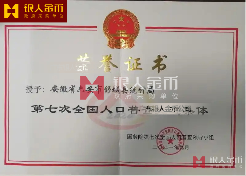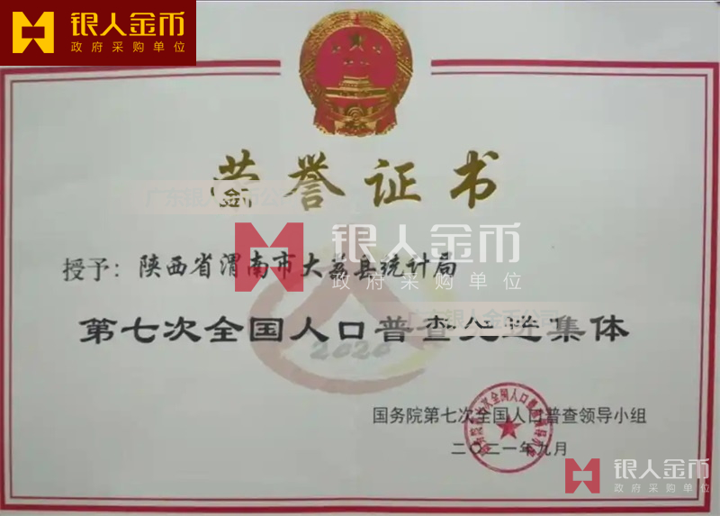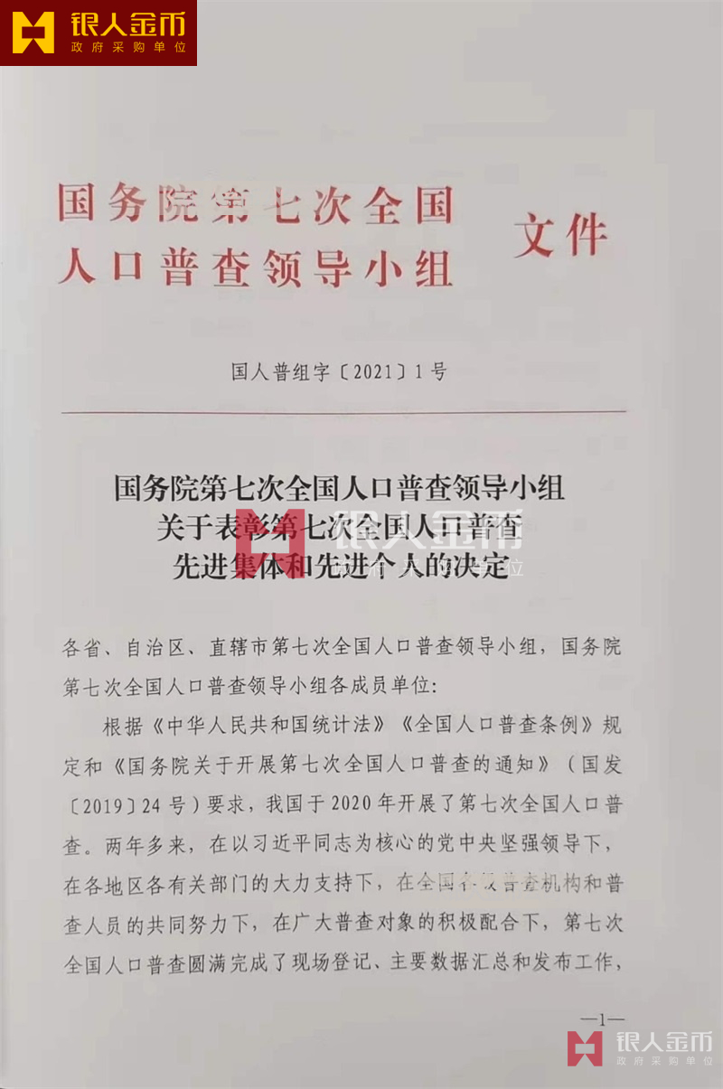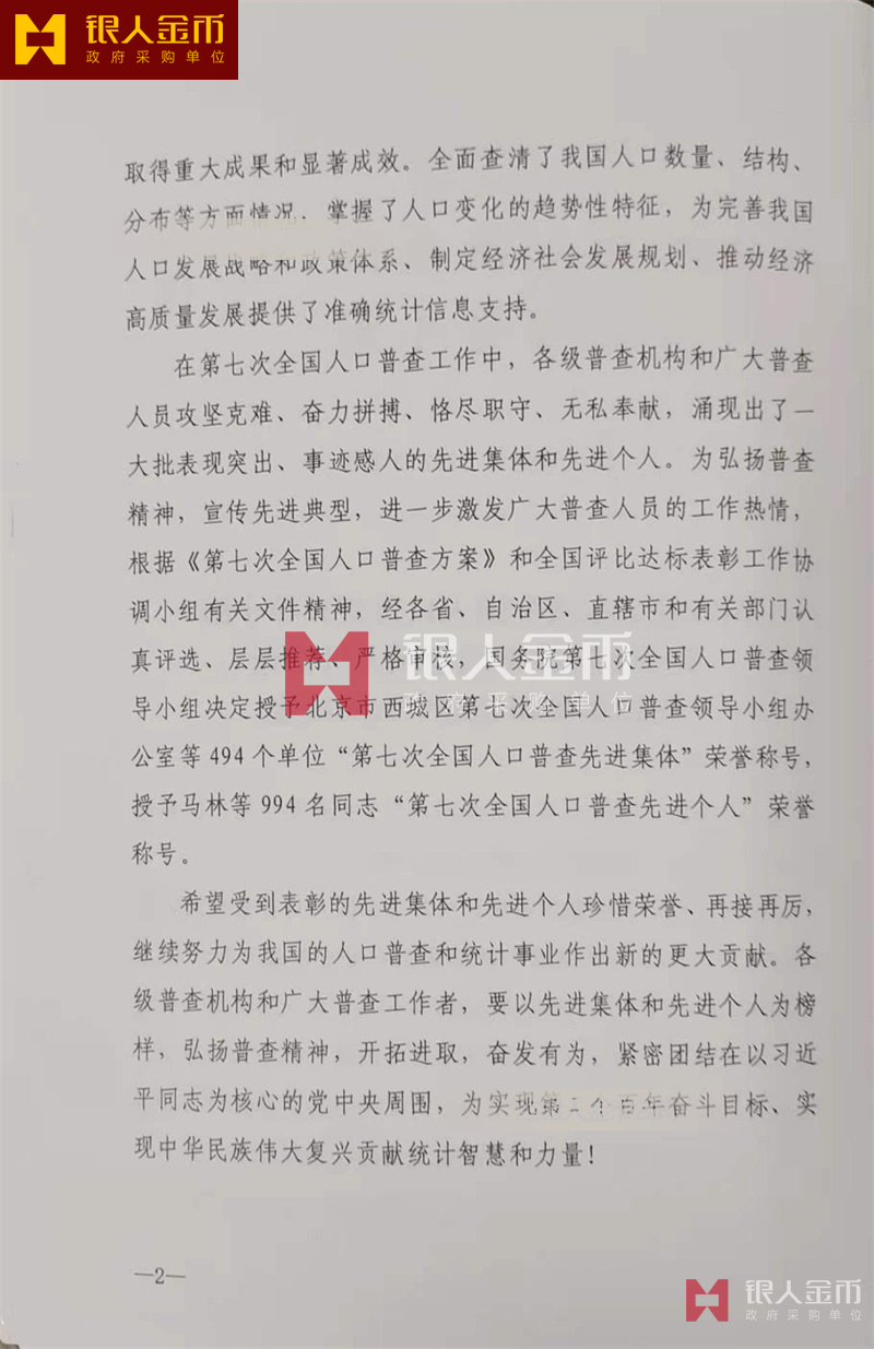 國務院第七次全國人口普查領(lǐng)導小組辦公室第七次全國人口普查先進集體獎牌證書和先進個人獎牌證書(圖)