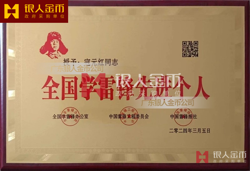 中共中央宣傳部全國學(xué)雷鋒先進(jìn)個人獎牌牌匾銅牌證書(圖)