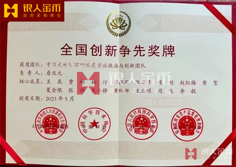 中華人民共和國科學(xué)技術(shù)部全國創(chuàng)新爭先獎(jiǎng)牌證書(圖)