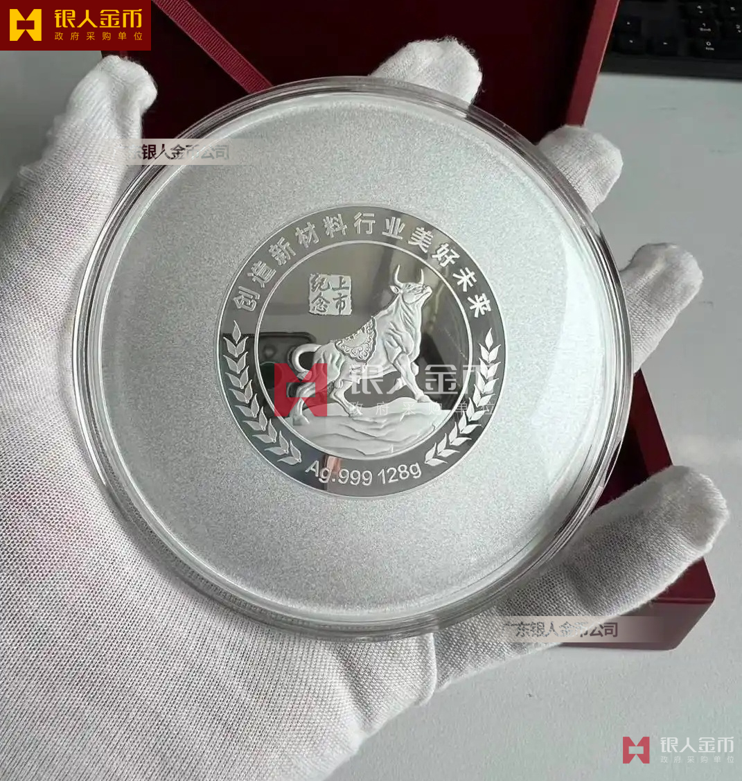 銀鑲金紀(jì)念章水晶鑲嵌獎(jiǎng)牌擺件定制 金幣定制廠家 奇德新材上市紀(jì)念銀章定制