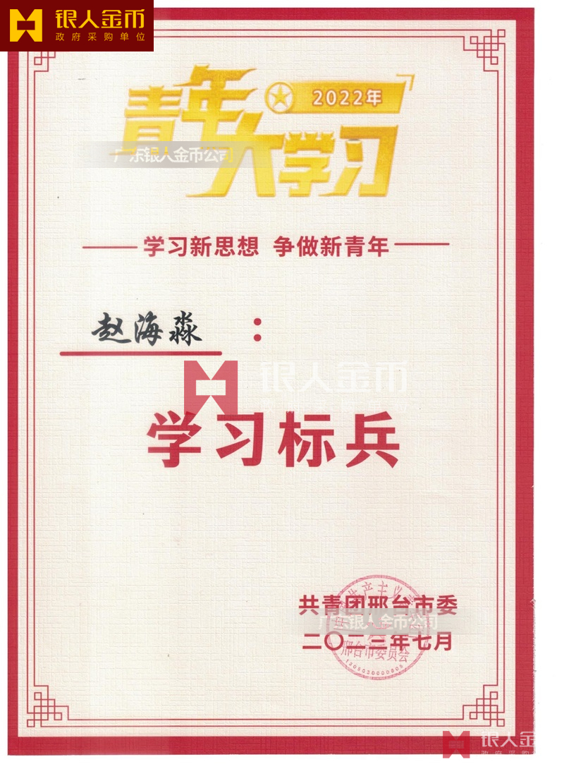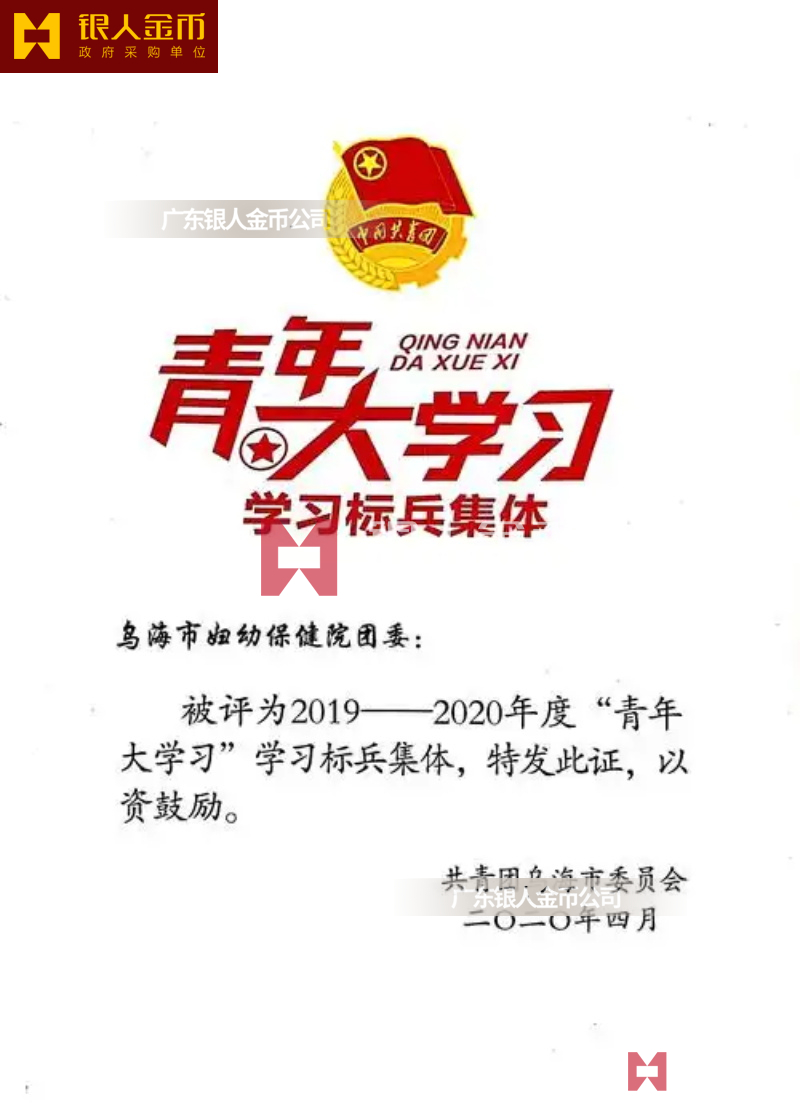 中央和國家機(jī)關(guān)工委“中央和國家機(jī)關(guān)青年學(xué)習(xí)標(biāo)兵”稱號獎牌證書(圖)