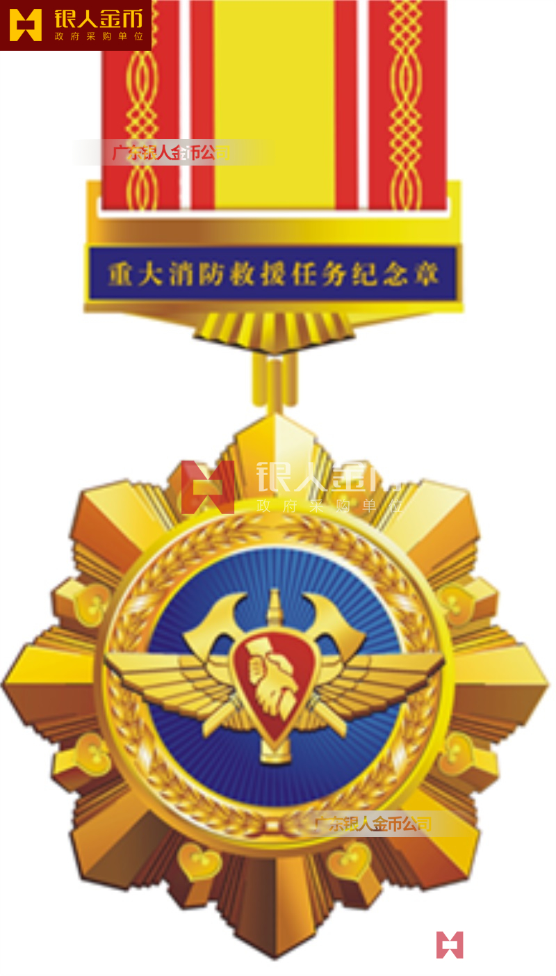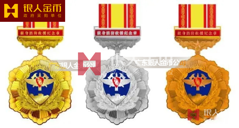 金質(zhì)、銀質(zhì)、銅質(zhì)“獻(xiàn)身消防救援紀(jì)念章”分別頒發(fā)給烈士和因公犧牲、因公致殘的消防救援人員。 重大消防救援任務(wù)紀(jì)念章