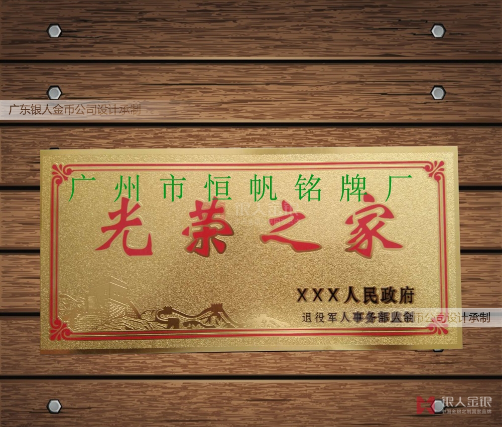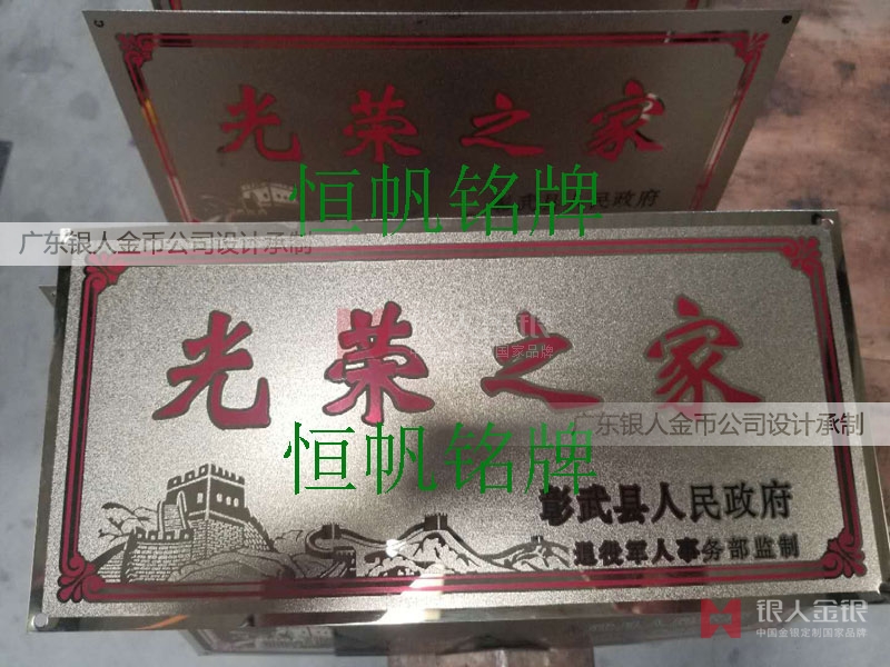 光榮之家銘牌、光榮之家標(biāo)牌、光榮牌、鈦金牌、不銹鋼牌專業(yè)制作鈦金色304不銹鋼具有一定生產(chǎn)能力的廠家