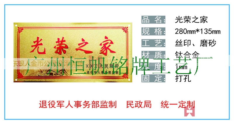 退役軍人事務(wù)部/政府部門民政廳統(tǒng)一懸掛安裝光榮之家牌匾/光榮牌制作標(biāo)準(zhǔn)規(guī)格尺寸技術(shù)參數(shù)生產(chǎn)廠家