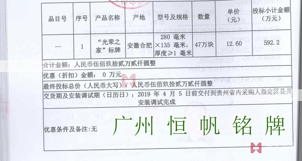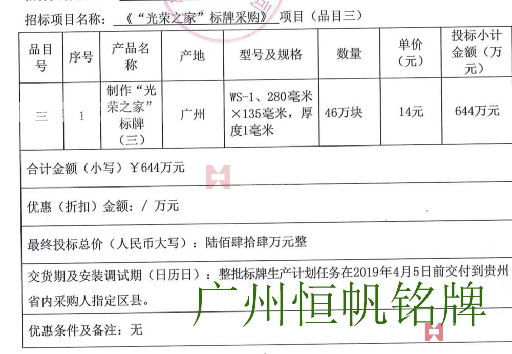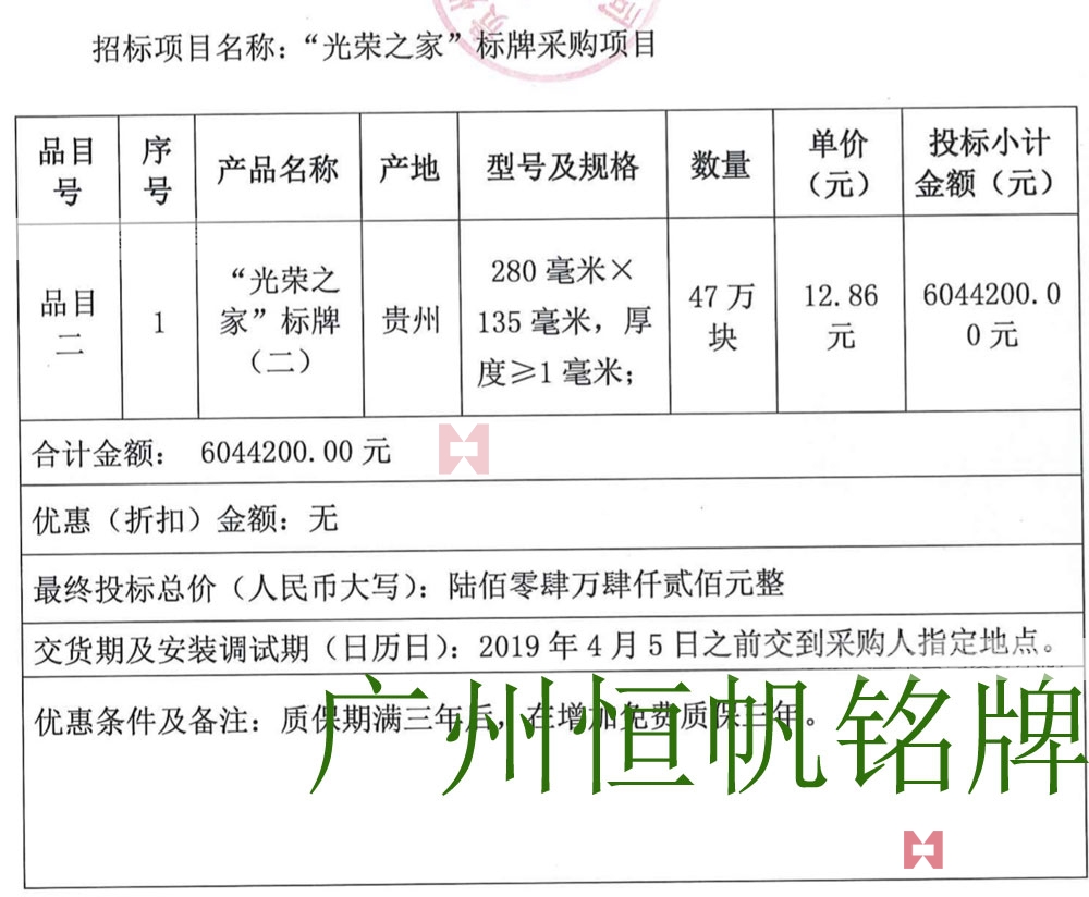 11、投標(biāo)供應(yīng)商必須出具書面承諾函,承諾知曉并接受光榮牌制作技術(shù)要求作為產(chǎn)品生產(chǎn)和質(zhì)量檢驗(yàn)的標(biāo)準(zhǔn)。否則投標(biāo)無效。