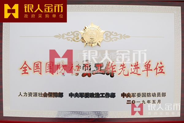 中央軍委政治工作部、中央軍委國防動(dòng)員部、國務(wù)院人力資源和社會(huì)保障部頒發(fā)全國國防動(dòng)員工作先進(jìn)單位獎(jiǎng)牌牌匾