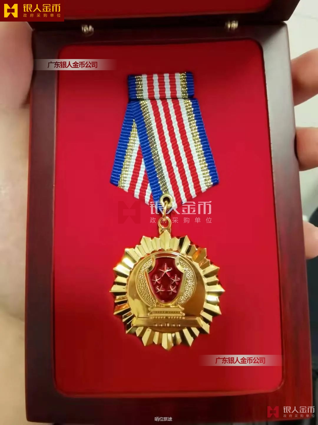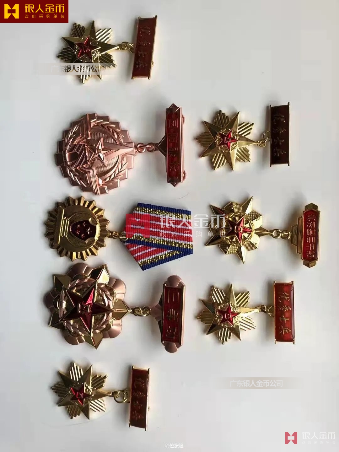制作工藝:壓鑄成型、烤漆、一級(jí)英雄模范鍍24k金 配件材質(zhì):綬帶采用紅色絲綢