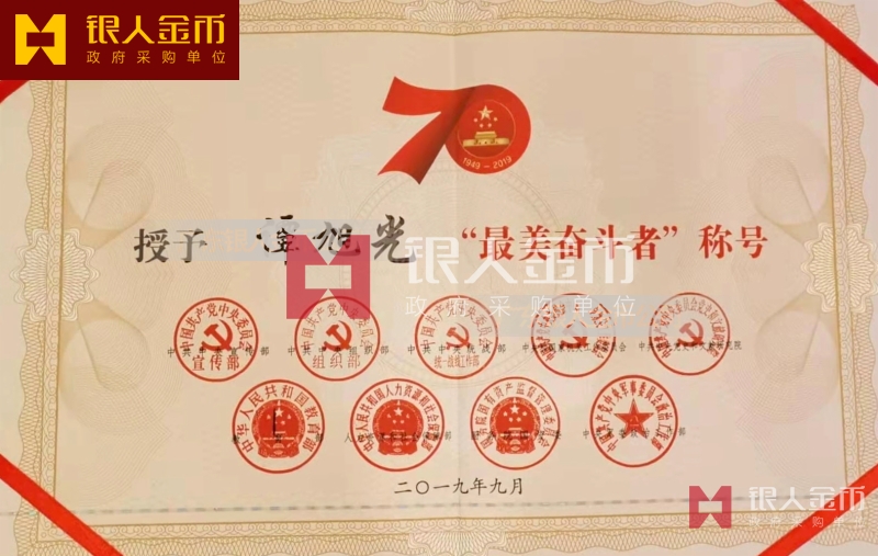 中共中央宣傳部/中共中央組織部"最美奮斗者"榮譽稱號獎?wù)聞渍录o念章獎牌及榮譽證書(圖)