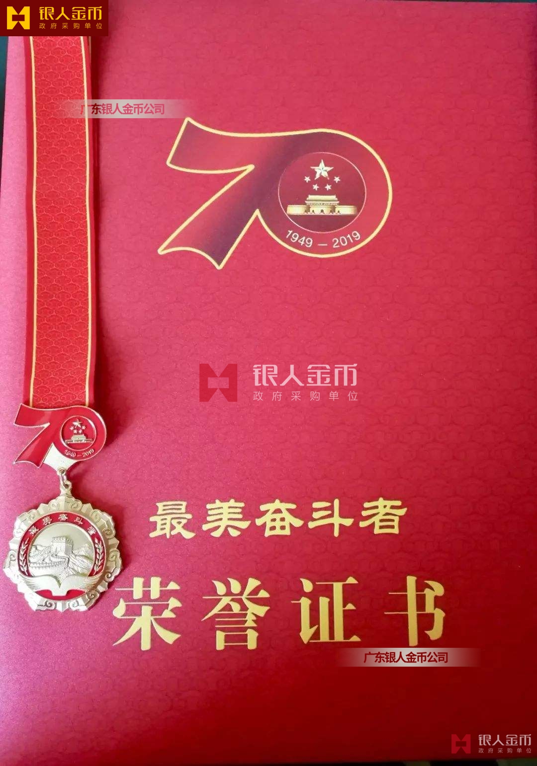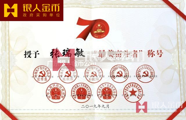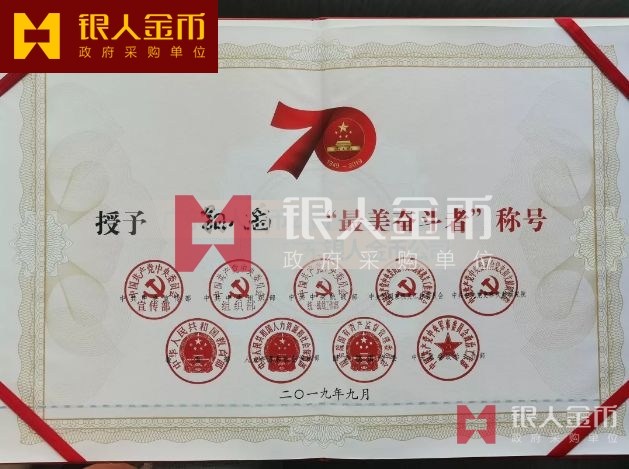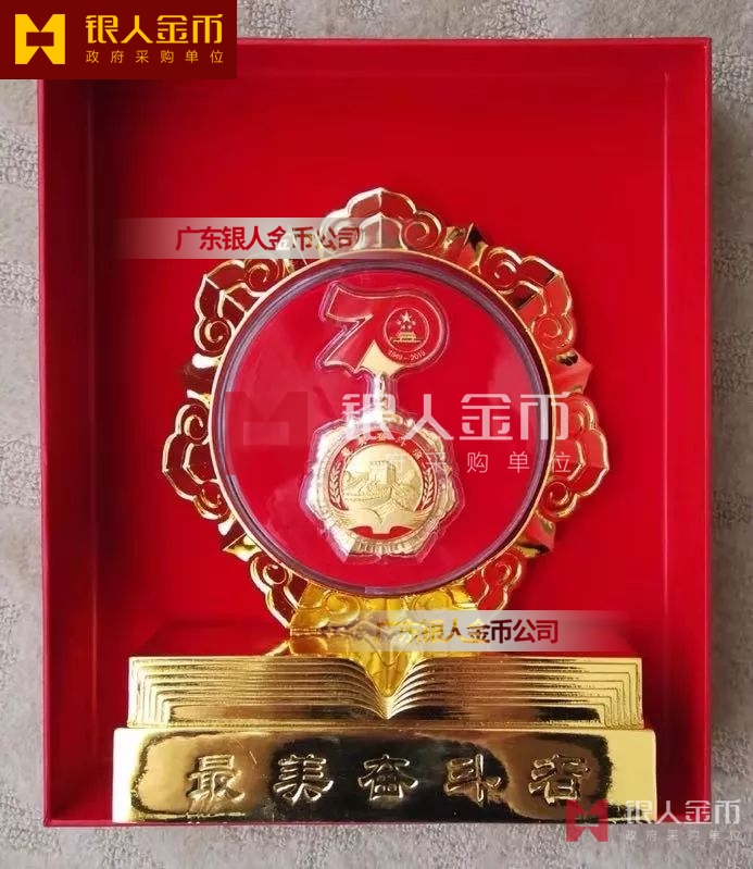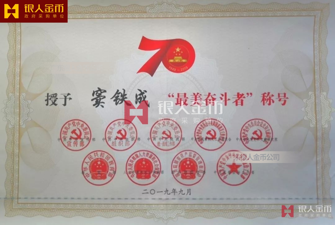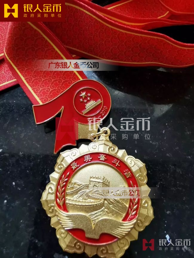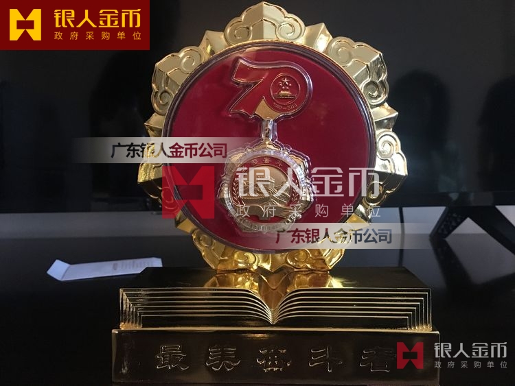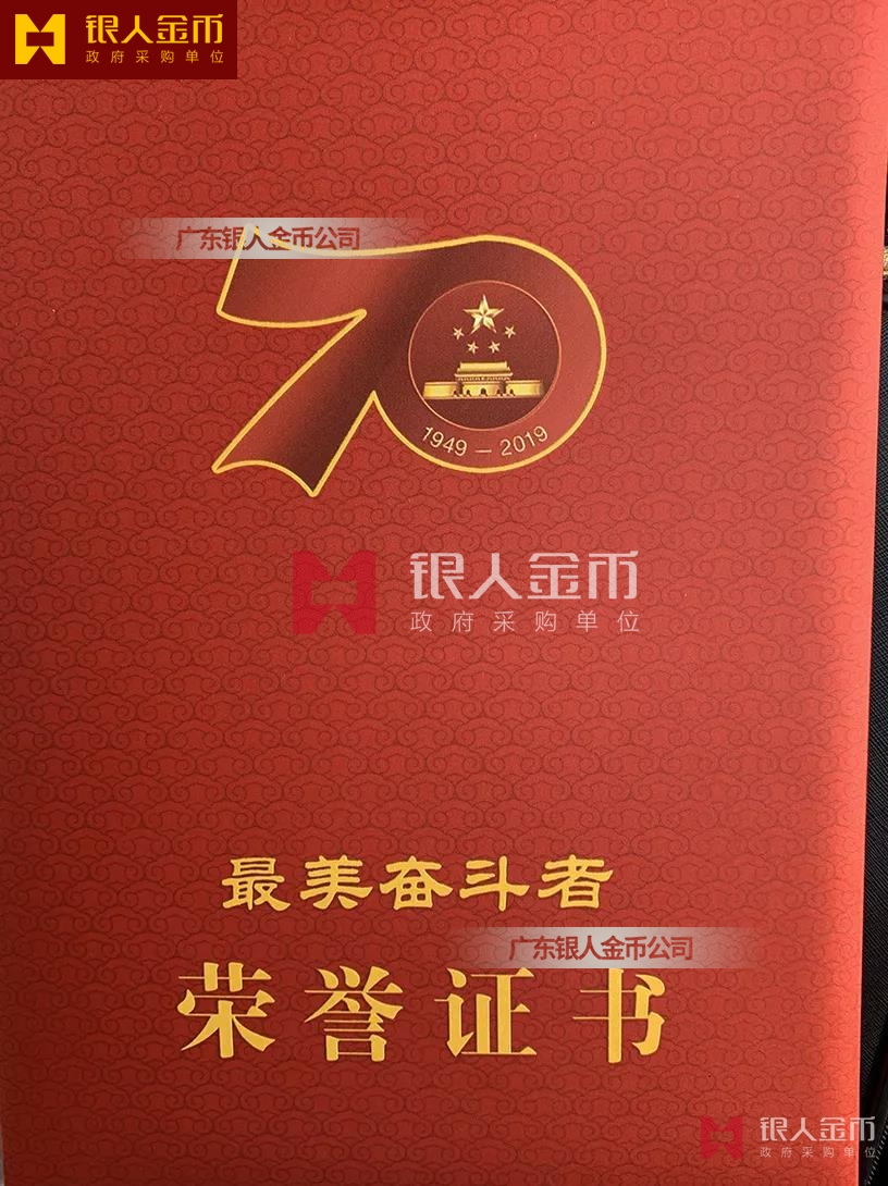 “最美奮斗者”榮譽獎?wù)虏捎勉y胎鍍金工藝完成,獎?wù)轮睆?9mm,寓意為1949年中華人民共和國成立,獎?wù)潞?mm,寓意慶祝中華人民共和國成立70周年。獎?wù)律喜糠譃橹腥A人民共和國成立70周年活動標識,下部分為“最美奮斗者”獎?wù)?,整體設(shè)計體現(xiàn)儀式感、莊嚴感和時代感,彰顯“禮贊新中國,奮進新時代”的精神內(nèi)涵。