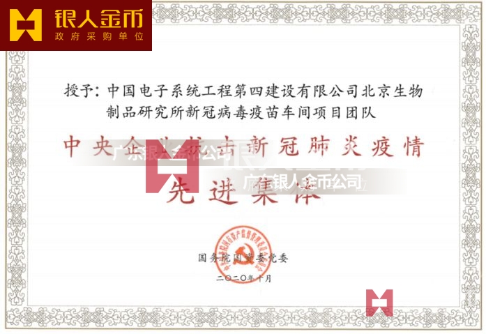 國務(wù)院國資委中央企業(yè)抗擊疫情先進集體獎牌證書和中央企業(yè)先進基層黨組織獎牌證書(圖)