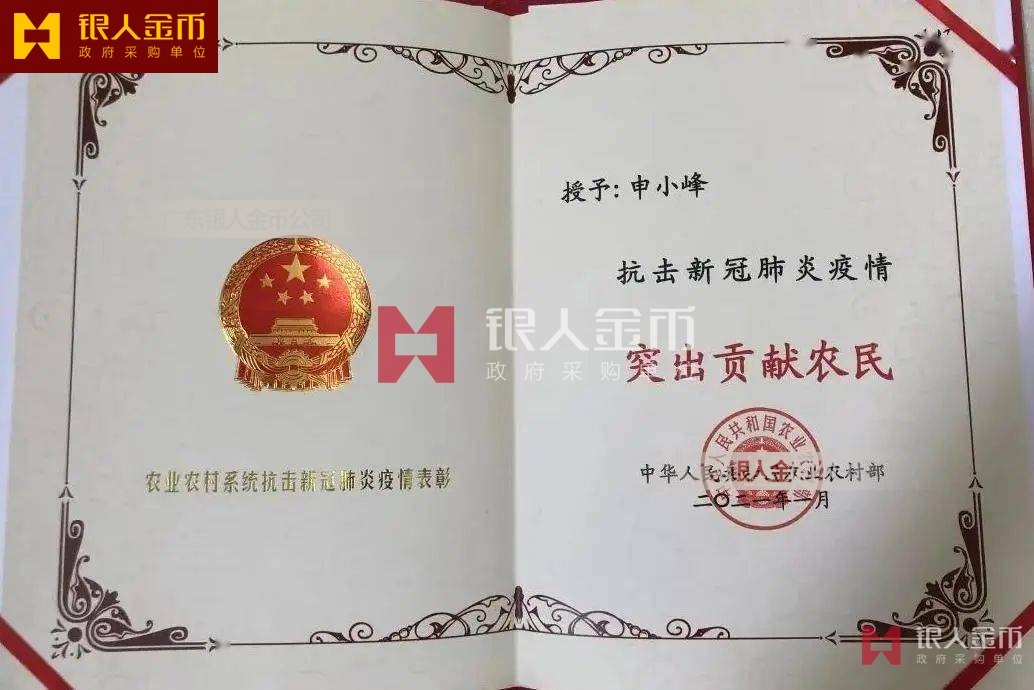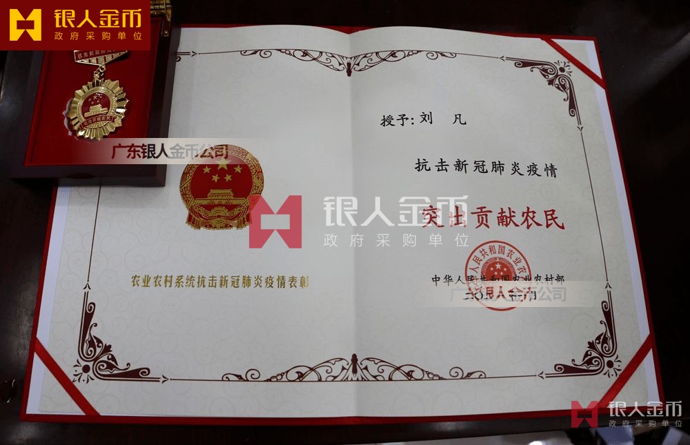 農(nóng)村農(nóng)業(yè)部抗擊新冠肺炎疫情先進個人突出貢獻農(nóng)民稱號獎牌獎章證書(圖)