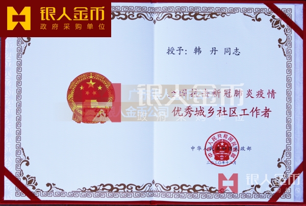 民政部全國民政系統(tǒng)抗擊疫情先進(jìn)集體個(gè)人獎(jiǎng)牌和優(yōu)秀城鄉(xiāng)社區(qū)工作者獎(jiǎng)?wù)伦C書(圖)