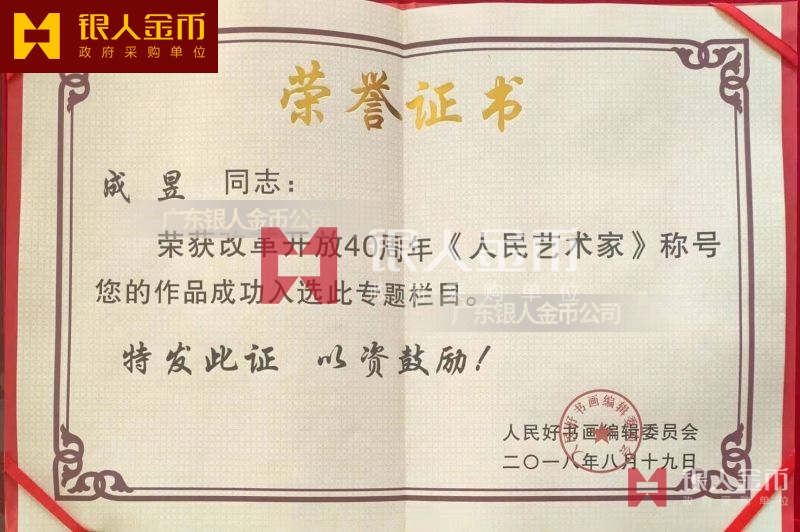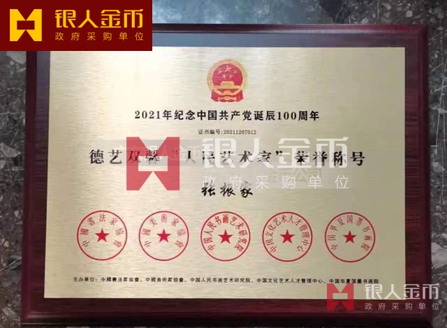 中國美術家協(xié)會、全國書畫藝術委員會、中國書法家協(xié)會人民藝術家榮譽稱號牌匾證書(圖)