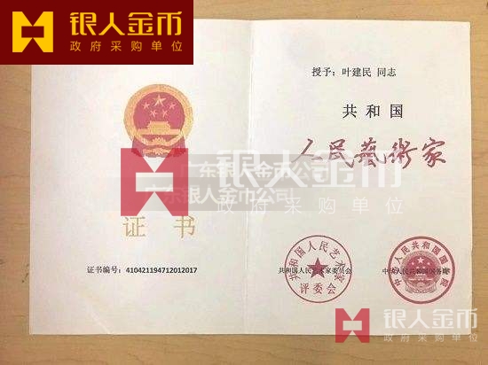 國務院原文化和旅游部舊版人民藝術家證書