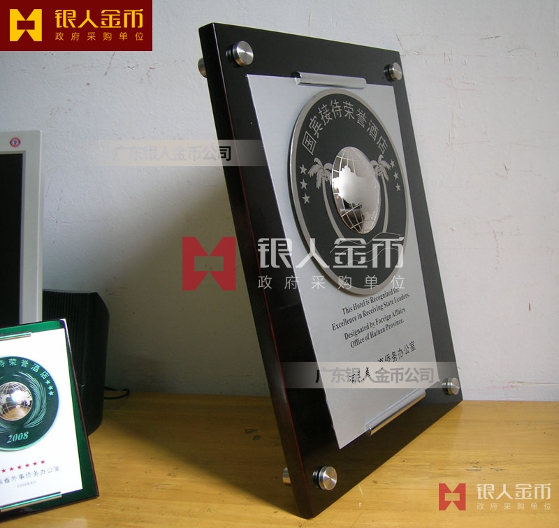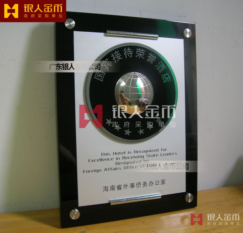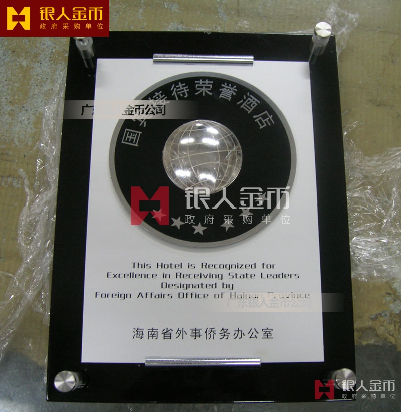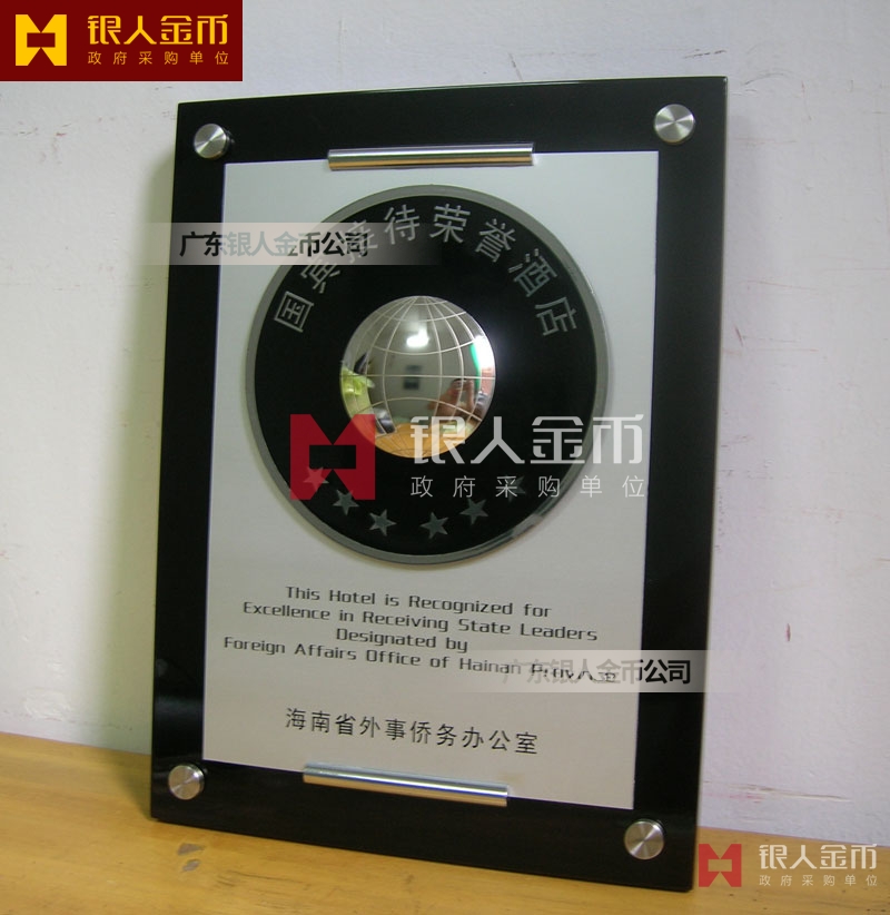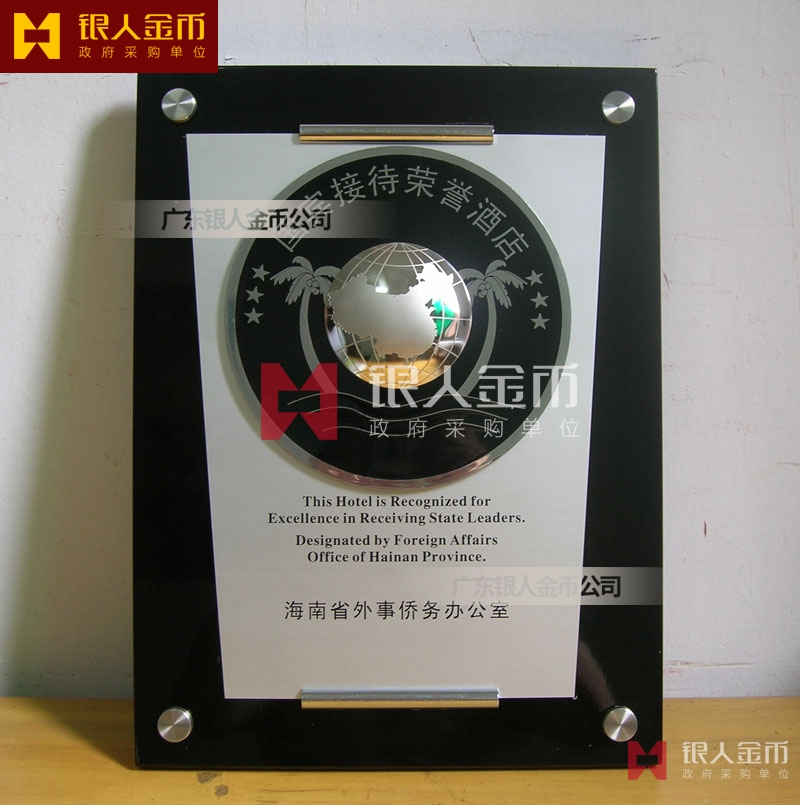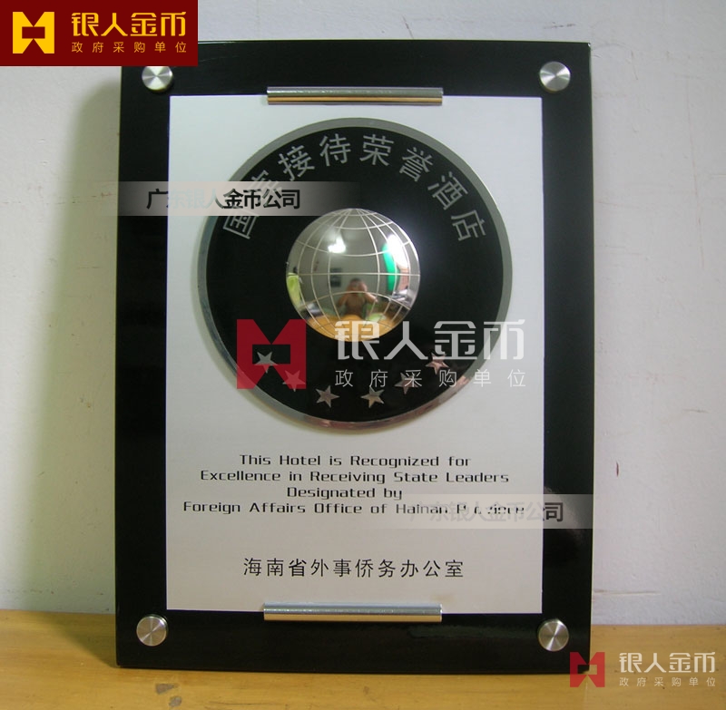 海南省政府外事僑務辦公室接待元首外賓國賓接待榮譽酒店牌匾獎牌(圖)