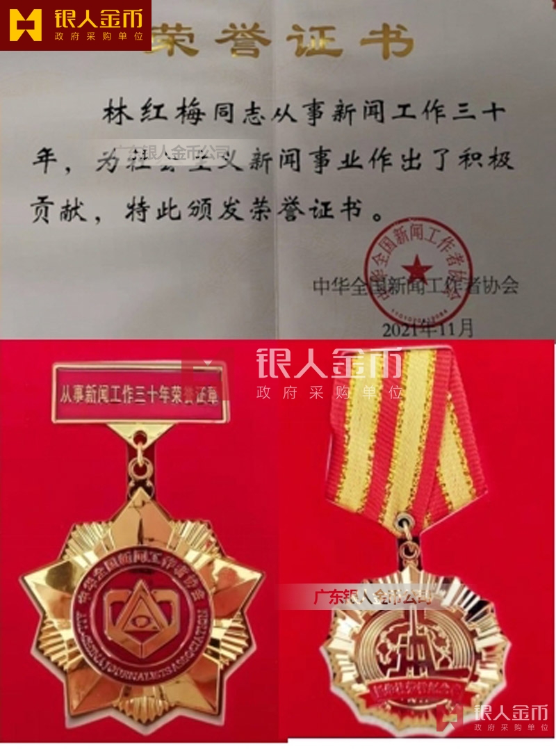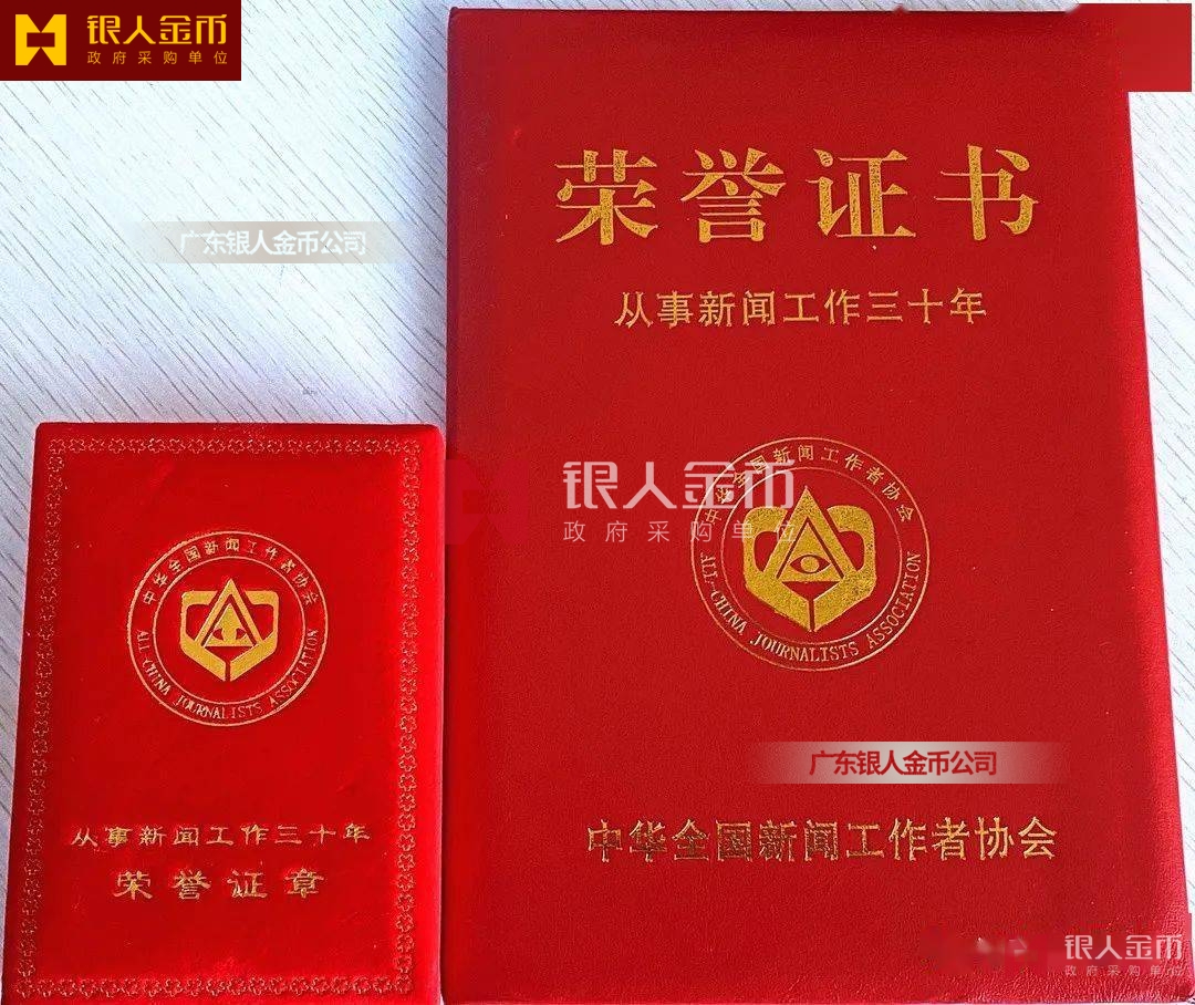 “從事新聞工作三十年”榮譽(yù)證書和證章