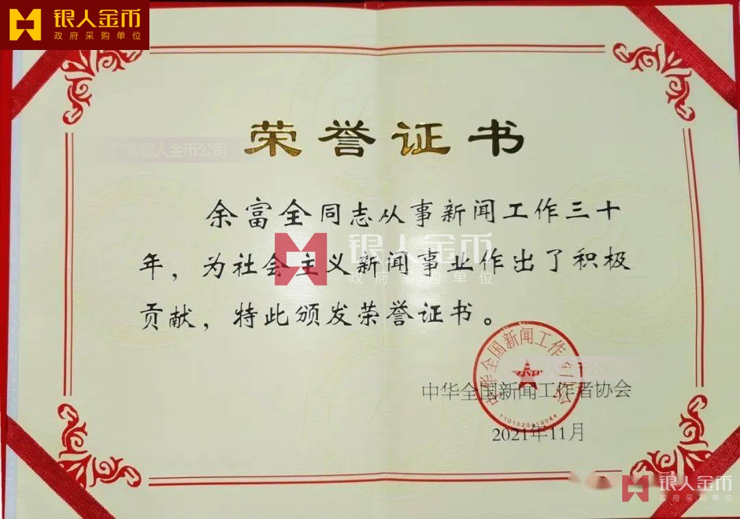 從事新聞工作三十年以上的采編人員榮獲由中華全國(guó)新聞工作者協(xié)會(huì)頒發(fā)的“從事新聞工作三十年”榮譽(yù)證書和證章