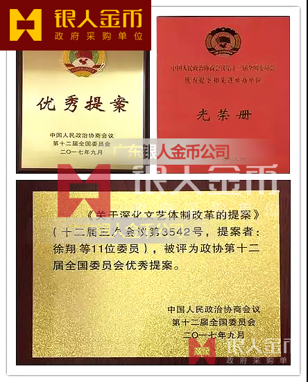 除此之外,還是重要證章和金銀幣文化產(chǎn)品的制造者,比如黨員徽章、黨徽、體育賽事運(yùn)會(huì)獎(jiǎng)牌、黨政單位授予獎(jiǎng)牌、部分授權(quán)委托生產(chǎn)、設(shè)計(jì)、定制國家級(jí)榮譽(yù)獎(jiǎng)?wù)录凹o(jì)念章等通俗來講,廣東銀人金幣公司不僅可以造章(包括金銀章、紀(jì)念章、獎(jiǎng)?wù)?、勛章);還可以制作各種證章、徽章;比如中共新疆自治區(qū)黨委組織部監(jiān)制中組部標(biāo)準(zhǔn)黨員徽章、中共湖南省委辦公廳監(jiān)制中共中央組織部標(biāo)準(zhǔn)指定定點(diǎn)黨徽、海南省政府外事僑務(wù)辦公室頒授的"國賓接待榮譽(yù)酒 店“稱號(hào)牌匾獎(jiǎng)牌、以褒獎(jiǎng)該酒店在博鰲亞洲論壇期間接待國家元首及政府首腦的出色表現(xiàn)。