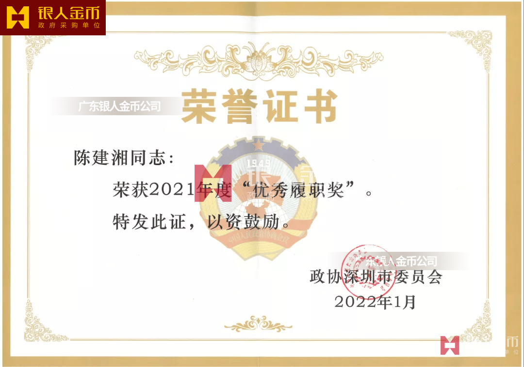 在全國獎(jiǎng)?wù)聞渍骂I(lǐng)域,廣東銀人金幣公司擁有專業(yè)的勛章產(chǎn)業(yè)規(guī)模、齊全的證章門類和完整的紀(jì)念章產(chǎn)業(yè)鏈條。除了負(fù)責(zé)各省市政府部門表彰獎(jiǎng)勵(lì)勛章、獎(jiǎng)?wù)?、紀(jì)念章的設(shè)計(jì)、研發(fā)、定制、服務(wù)于榮譽(yù)功勛全生命周期管理,廣東銀人金幣公司還是標(biāo)準(zhǔn)國標(biāo)999黃金足金金條的制造者之一。
