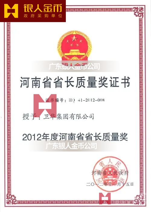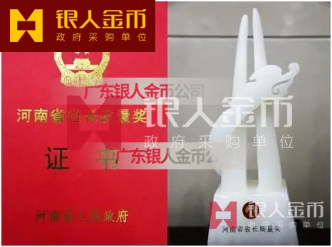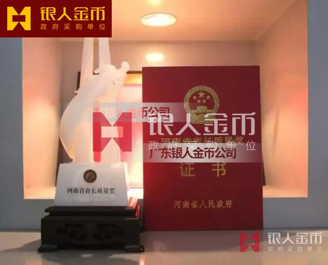 河南省政府河南省省長質(zhì)量獎獎?wù)陋勁篇劚白C書(圖)【廣州銀人獎?wù)伦C章廠有限公司】