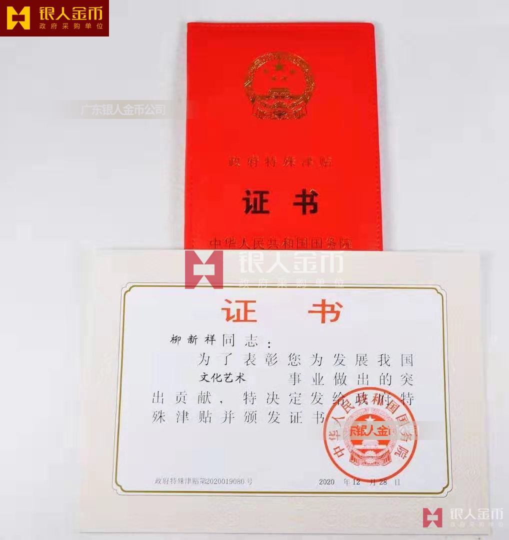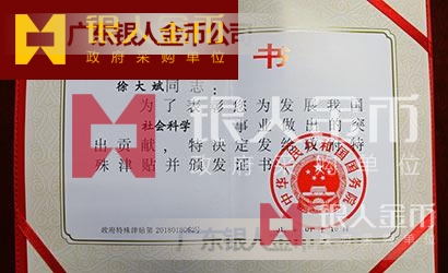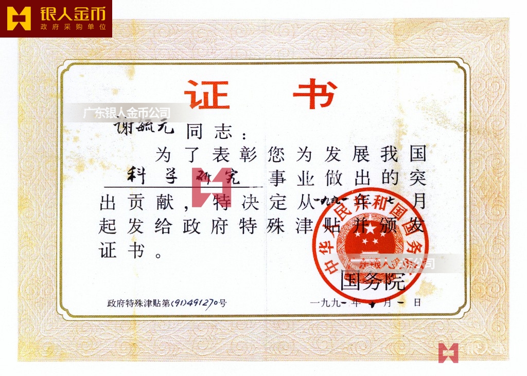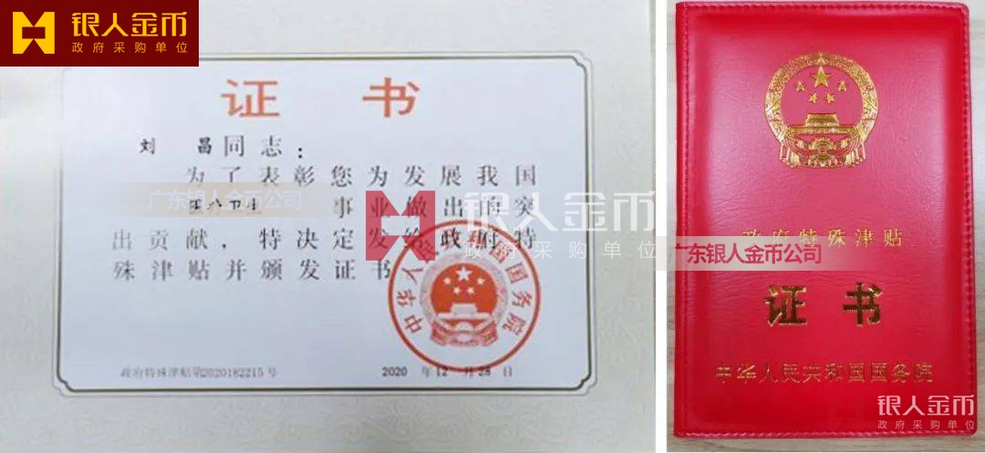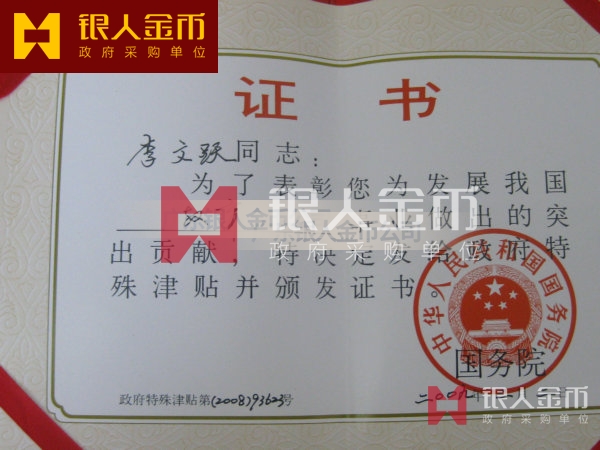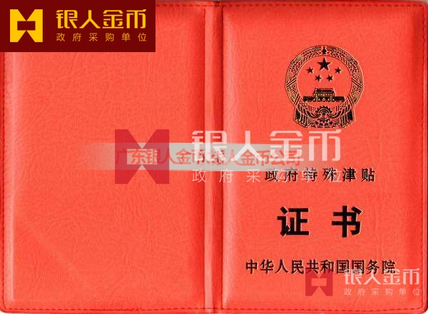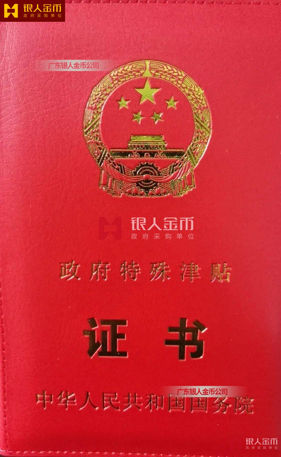 中華人民共和國國務(wù)院政府特殊津貼證書(圖)-【廣州銀人紀(jì)念章證章廠家有限公司】