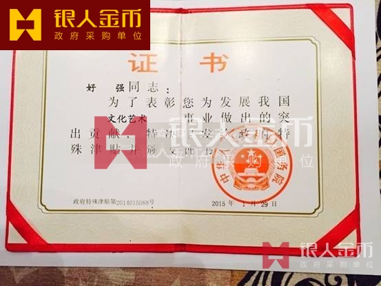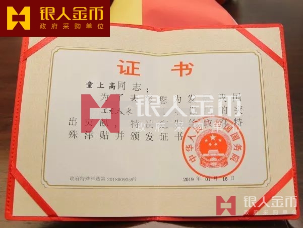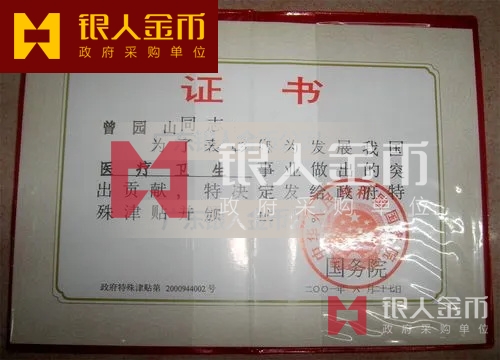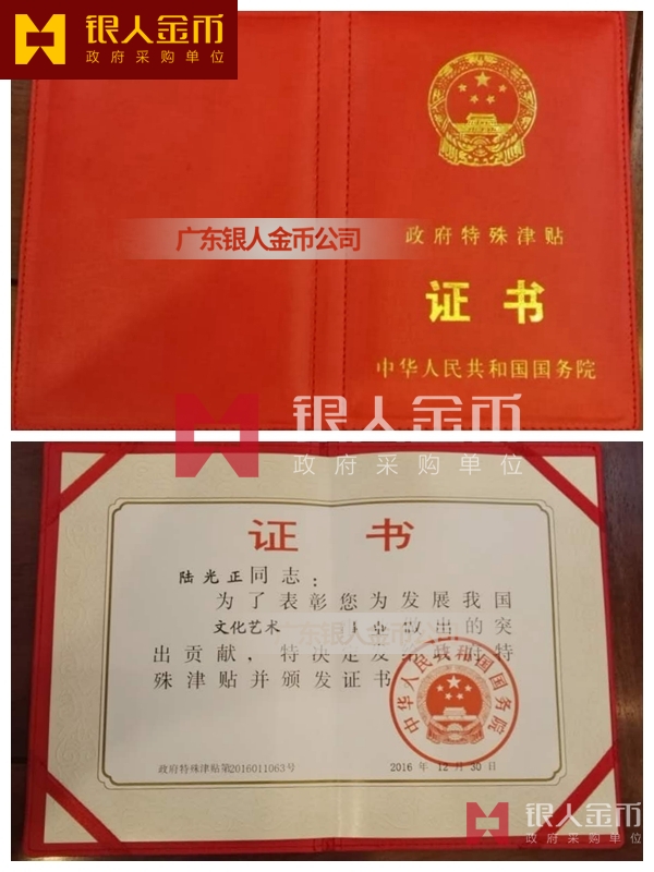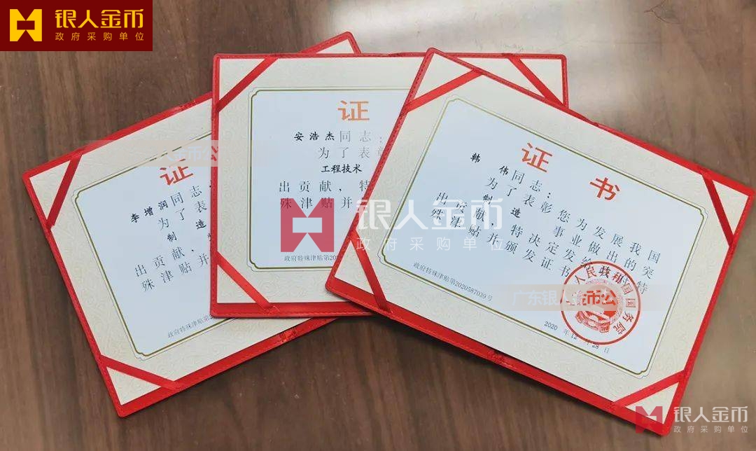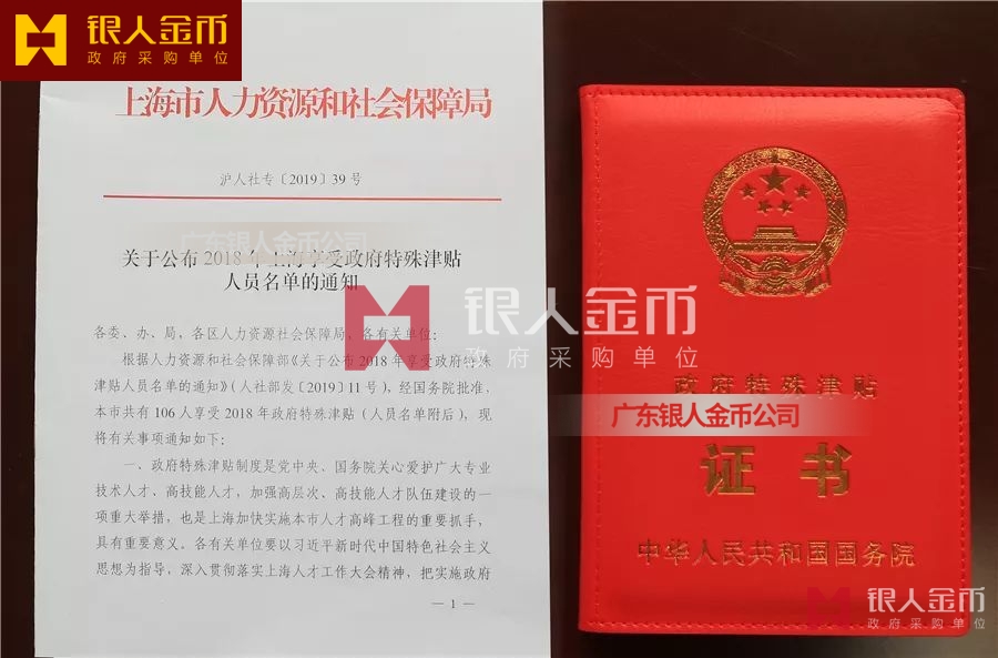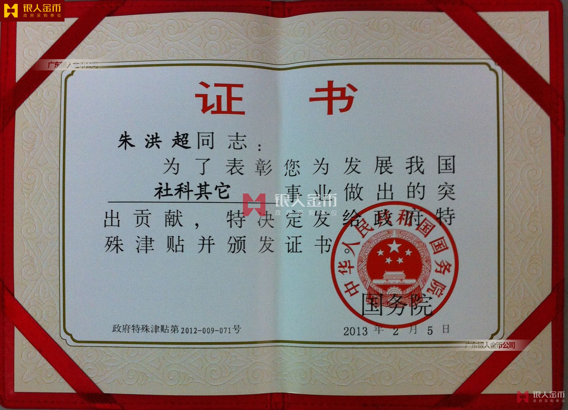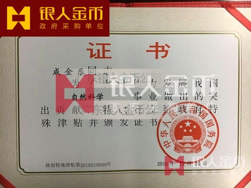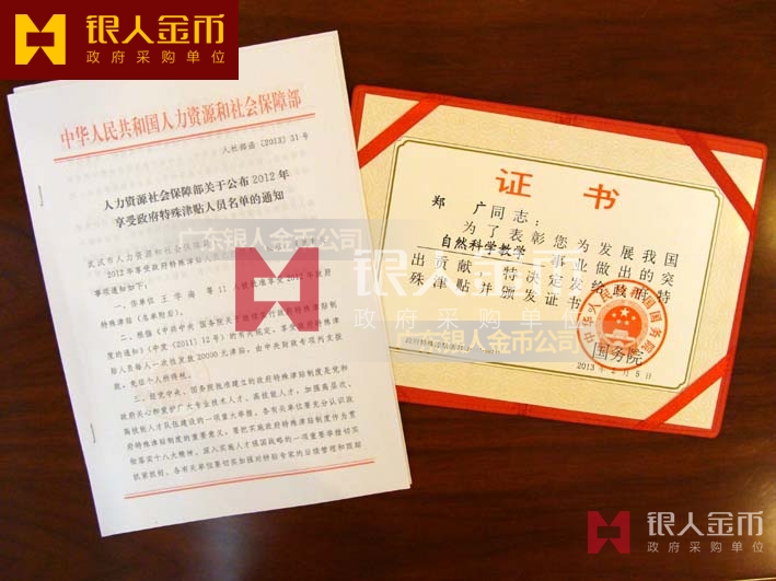 中華人民共和國國務(wù)院政府特殊津貼證書(圖)-【廣州銀人紀(jì)念章證章廠家有限公司】
