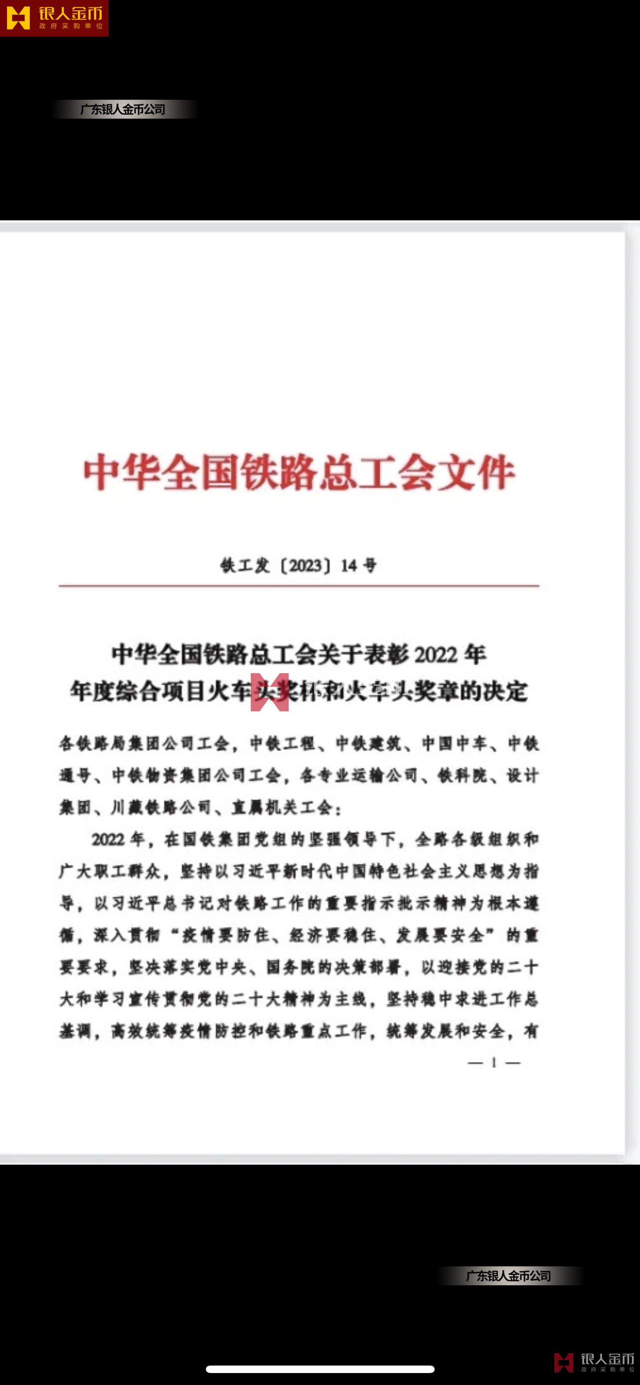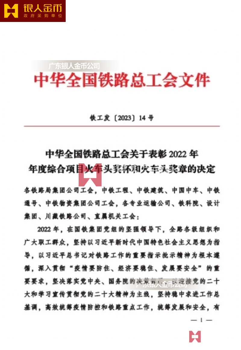 全國鐵路系統(tǒng)最高榮譽(yù):國家鐵路局/中華全國鐵路總工會(huì)2022年度火車頭獎(jiǎng)?wù)伦C書(圖)