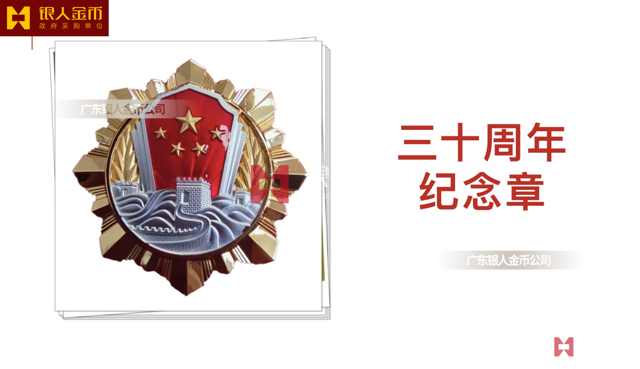 在全國(guó)獎(jiǎng)?wù)聞渍骂I(lǐng)域,廣東銀人金幣公司擁有專業(yè)的勛章產(chǎn)業(yè)規(guī)模、齊全的證章門類和完整的紀(jì)念章產(chǎn)業(yè)鏈條。除了負(fù)責(zé)各省市政府部門表彰獎(jiǎng)勵(lì)勛章、獎(jiǎng)?wù)隆⒓o(jì)念章的設(shè)計(jì)、研發(fā)、定制、服務(wù)于榮譽(yù)功勛全生命周期管理,廣東銀人金幣公司還是標(biāo)準(zhǔn)國(guó)標(biāo)999黃金足金金條的制造者之一。