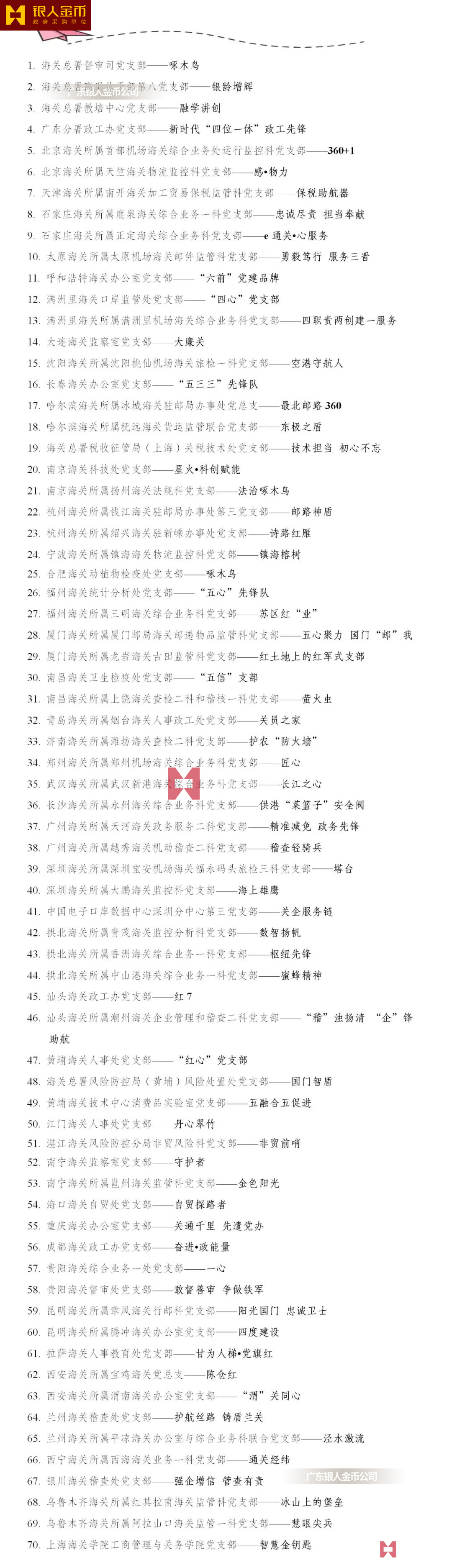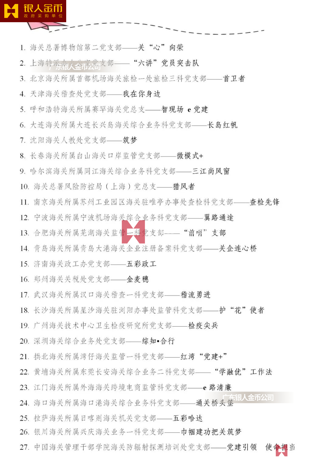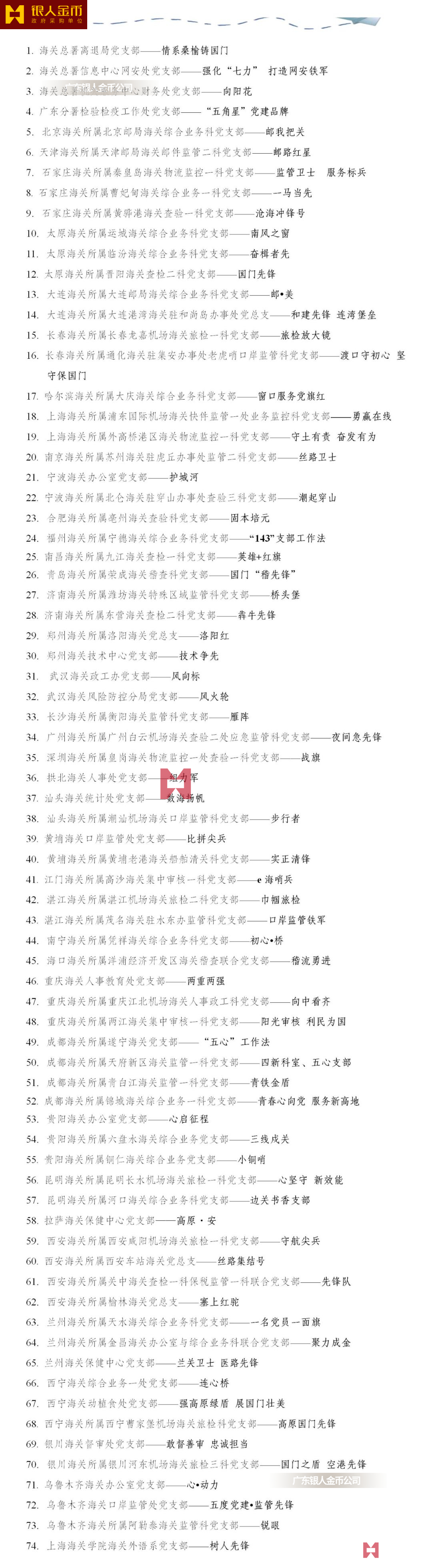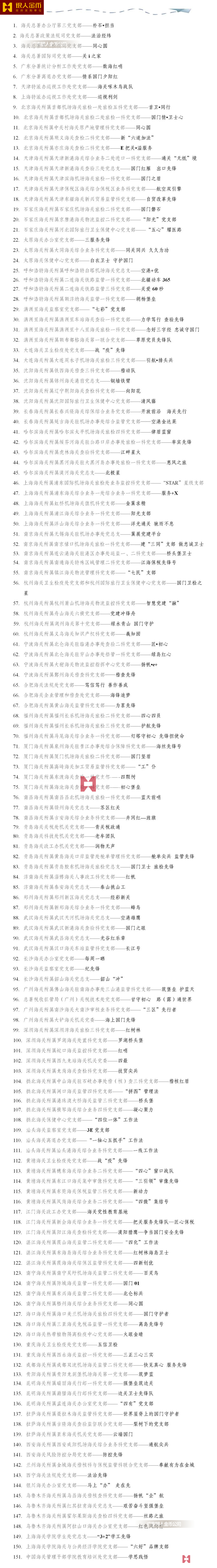 全國海關(guān)黨建示范(培育)品牌名單單位