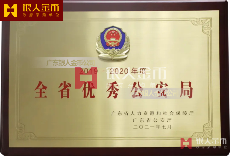 廣東省公安廳全省優(yōu)秀公安局獎牌證書和全省優(yōu)秀公安基層單位獎牌銅牌獎狀牌匾(圖)