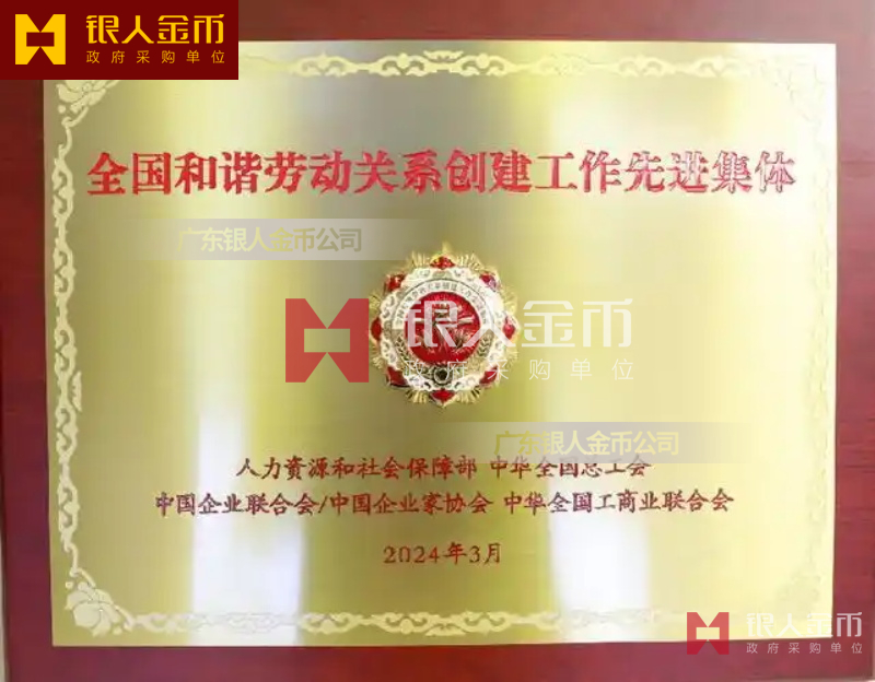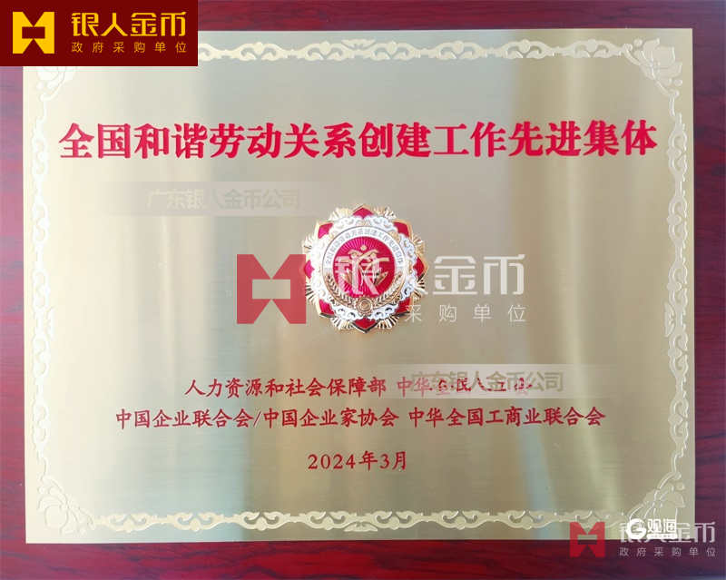 人社部全國和諧勞動關(guān)系創(chuàng)建工作先進集體獎牌證書牌匾銅牌(圖)
