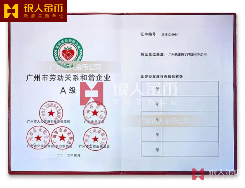 全國和諧勞動關(guān)系創(chuàng)建工作先進集體”稱號獎牌、證書