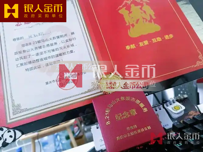 中共重慶市北碚區(qū)委頒發(fā)歇馬山火救援志愿服務(wù)榮譽(yù)紀(jì)念獎?wù)录皹s譽(yù)紀(jì)念章(圖)